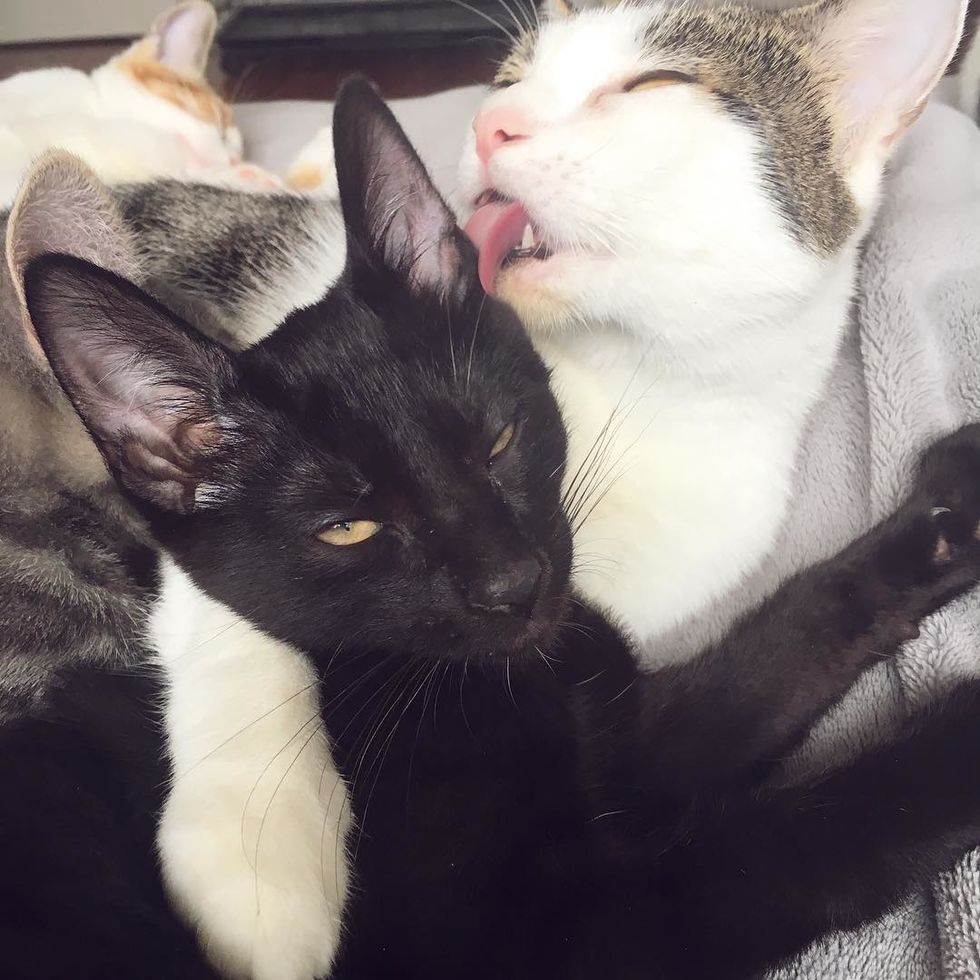 Vincent gave her some much-needed food and water while the kittens were snuggling comfortably in their bed.