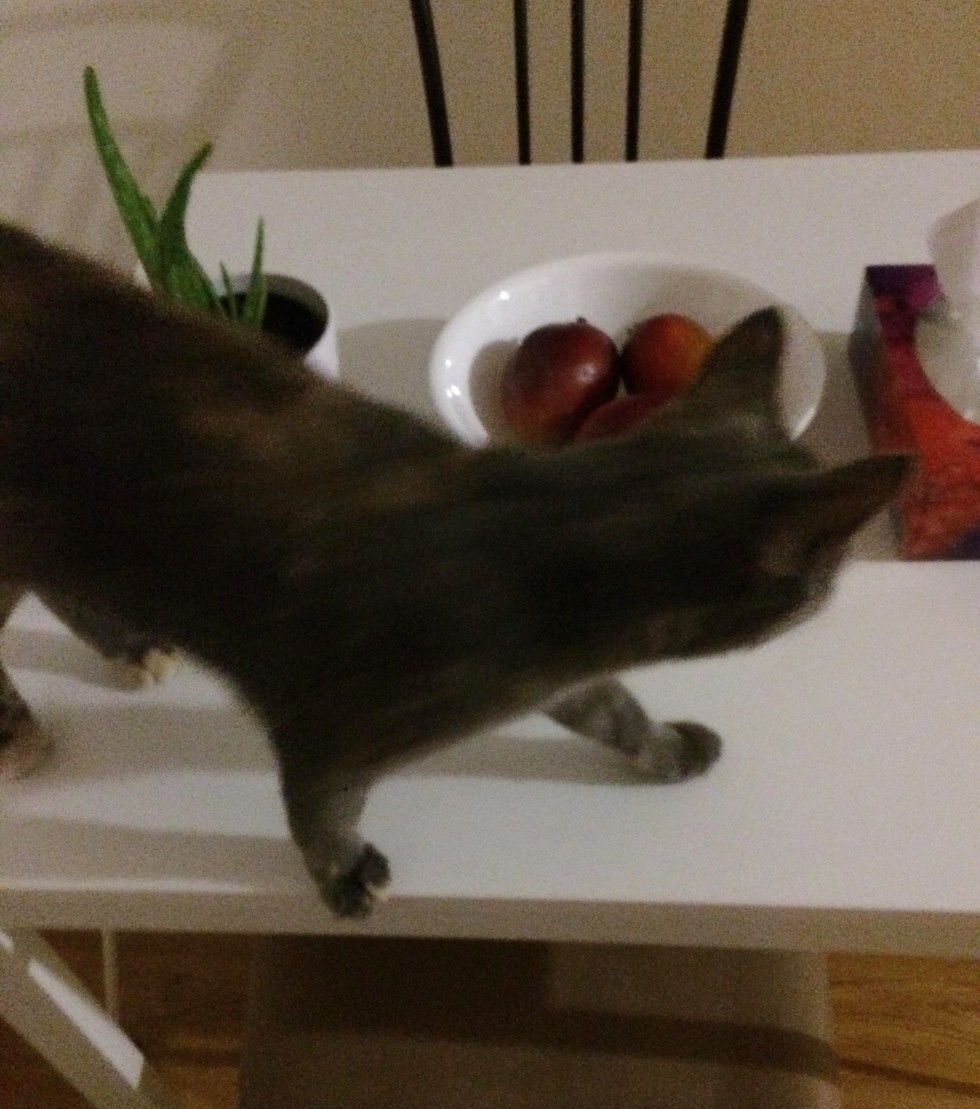 She went to the kitchen and checked out what the humans had on the dining table, making herself at home.