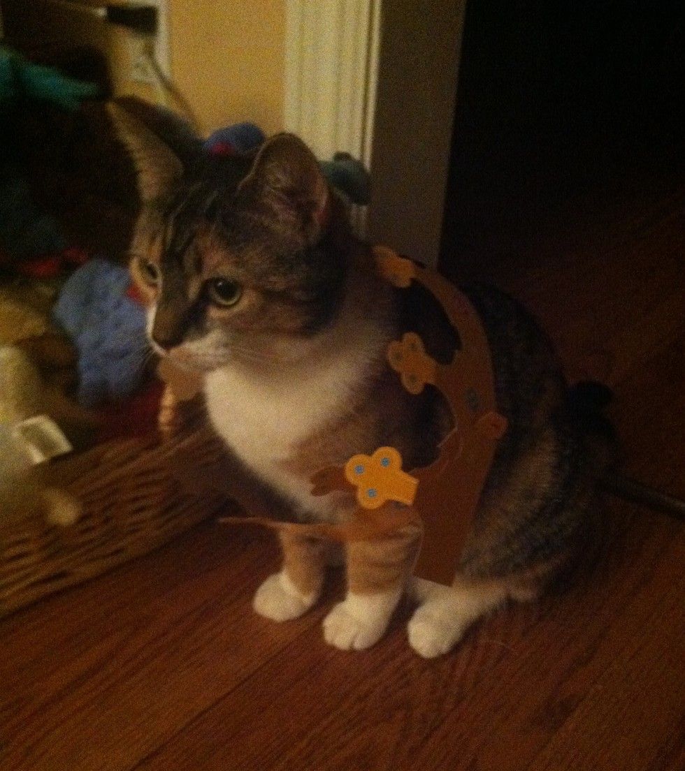Clementine didn't get enough food and nutrition before she was rescued. "She stayed a very small cat (barely 5 pounds), but makes up for it with personality."