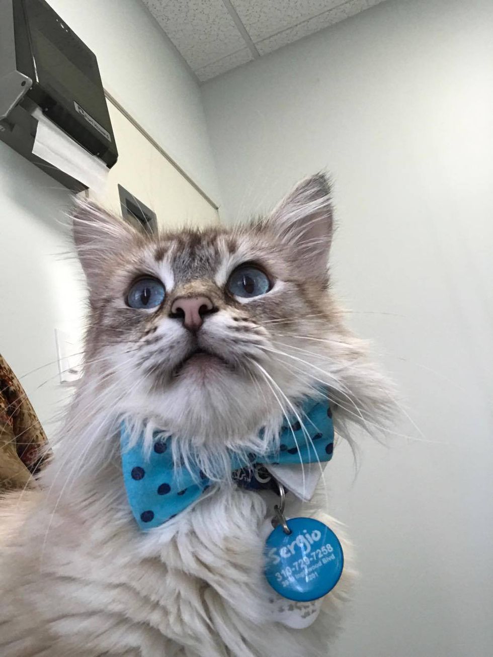 "When the vet met him, she asked if this was my cat and I said 'no'. She said 'I think he has a different idea.'"