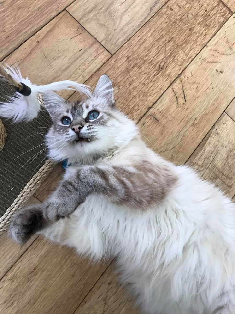 "He has a brother and a sister cat, as well as a sister Pomeranian all to himself. He's doubled his body weight, is so spoiled, and is one of the great loves of my life.