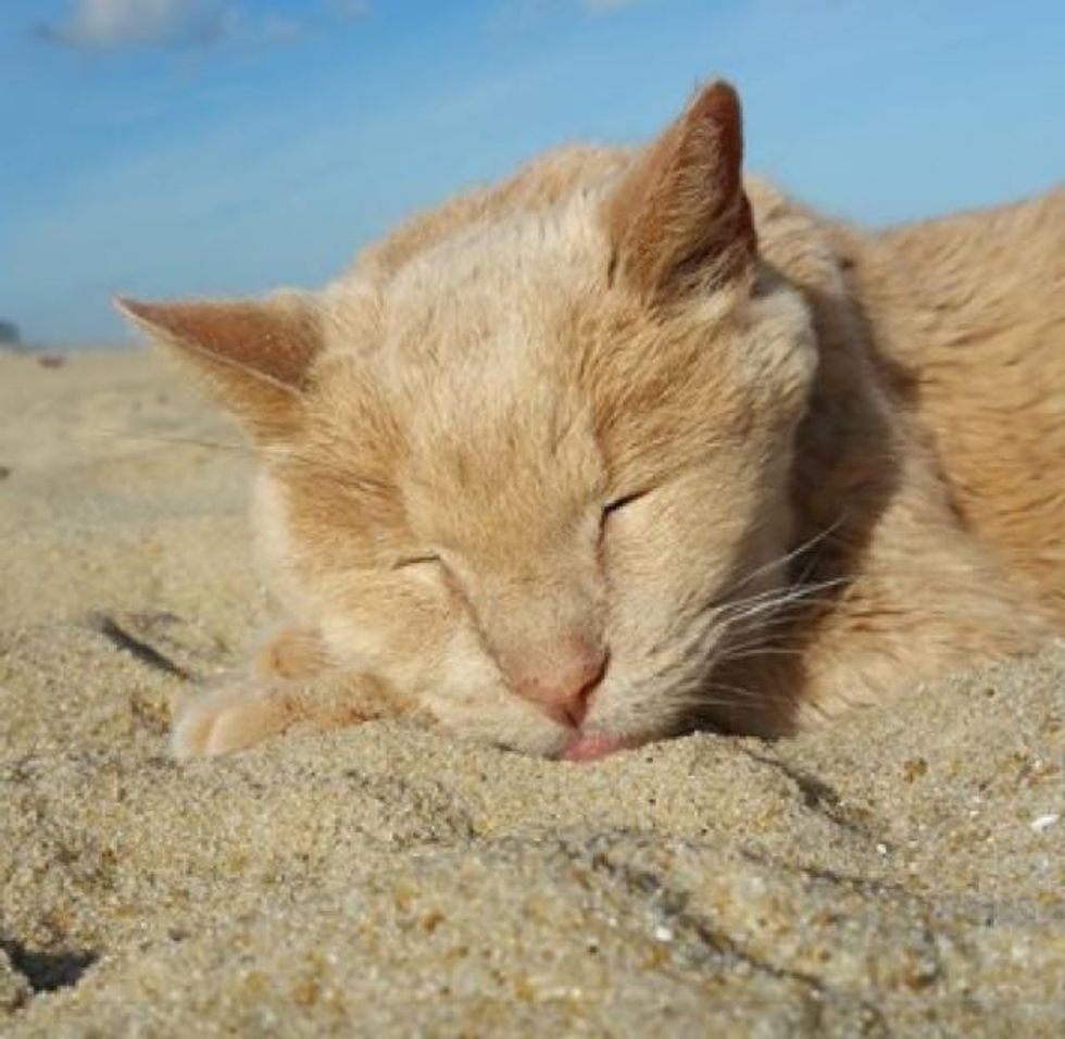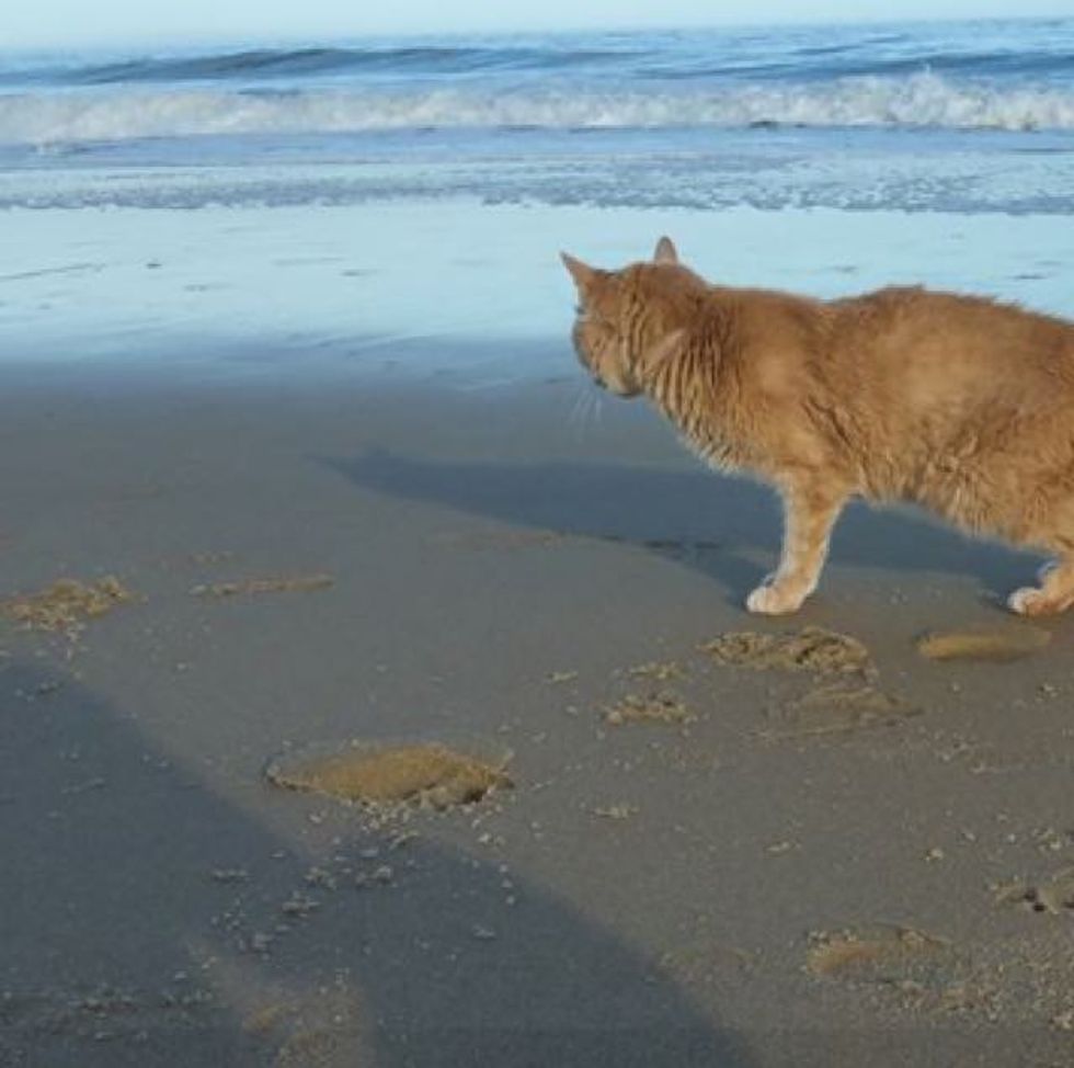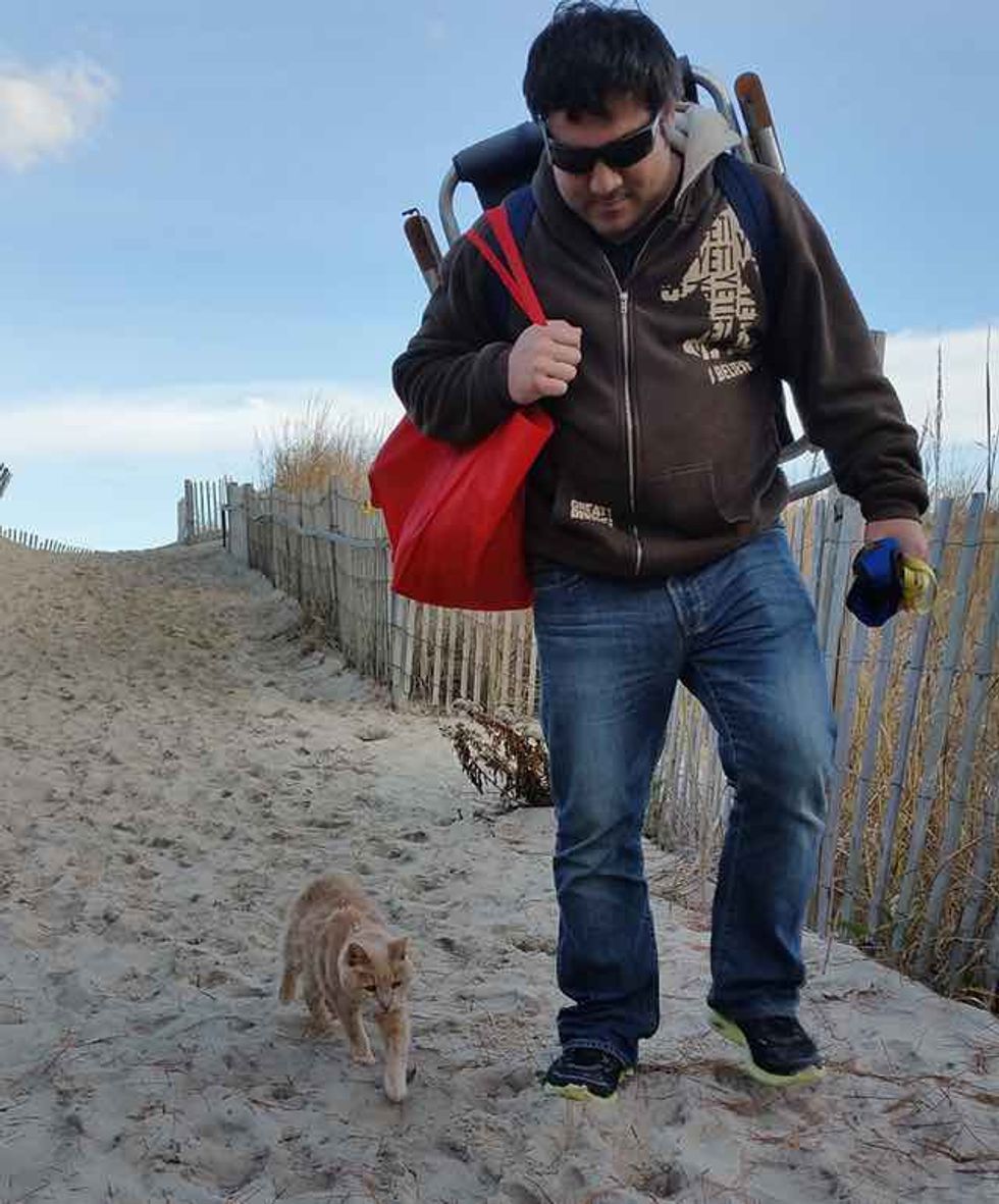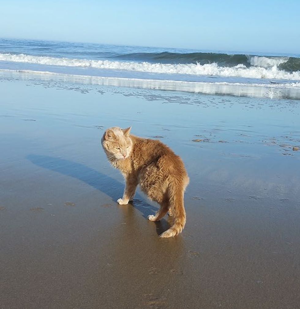 Thanksgiving weekend we took him to the beach and he loved it! Literally sunbathed in the sand and walks along the water all afternoon. Needless to say he made a lot of friends as people stopped to pet him and hear his story."
