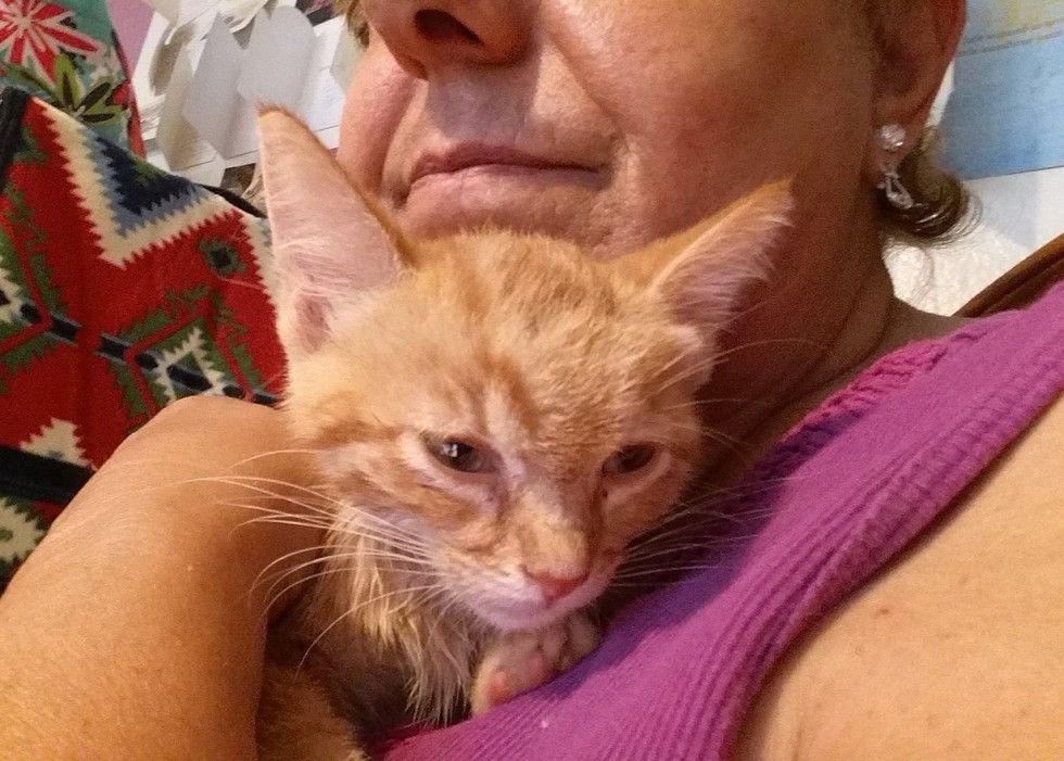 A ginger kitten was dropped off at an animal shelter in August, 2015. She was unable to eat and was frightened with human contact. Just a few days after she arrived in the shelter, she was put on death row.