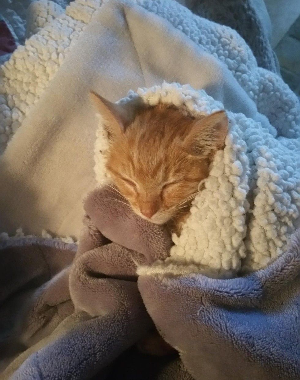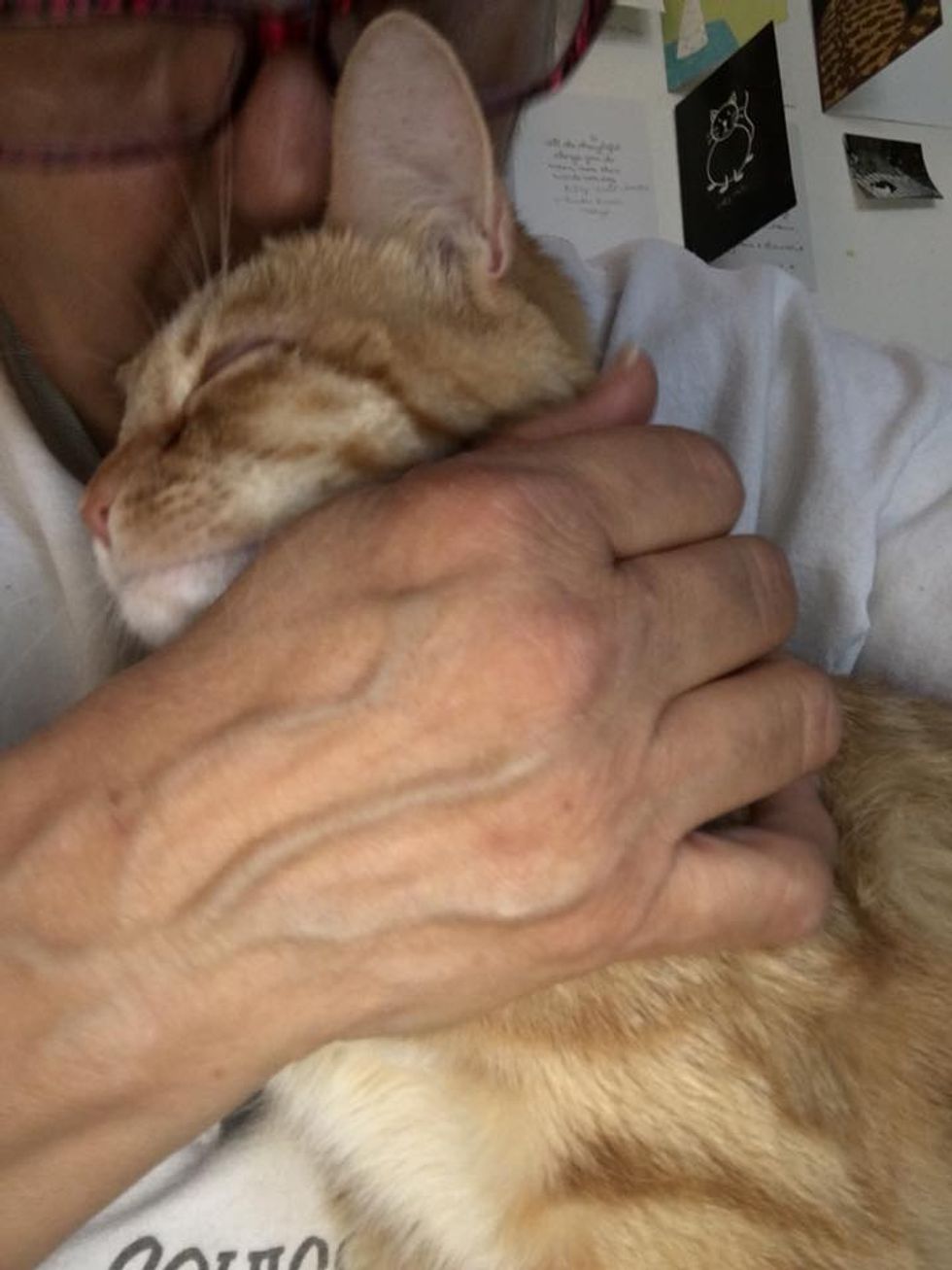 The little ginger girl felt so comforted and loved for the first time with Mama J by her side. She began to purr and couldn't get enough of cuddles.