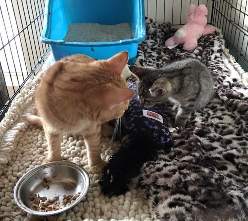 Angel Bug has taken her under her wings. They snuggle together, eat together and nap together.