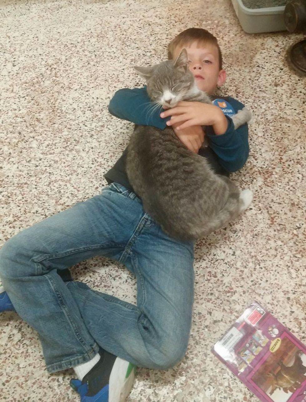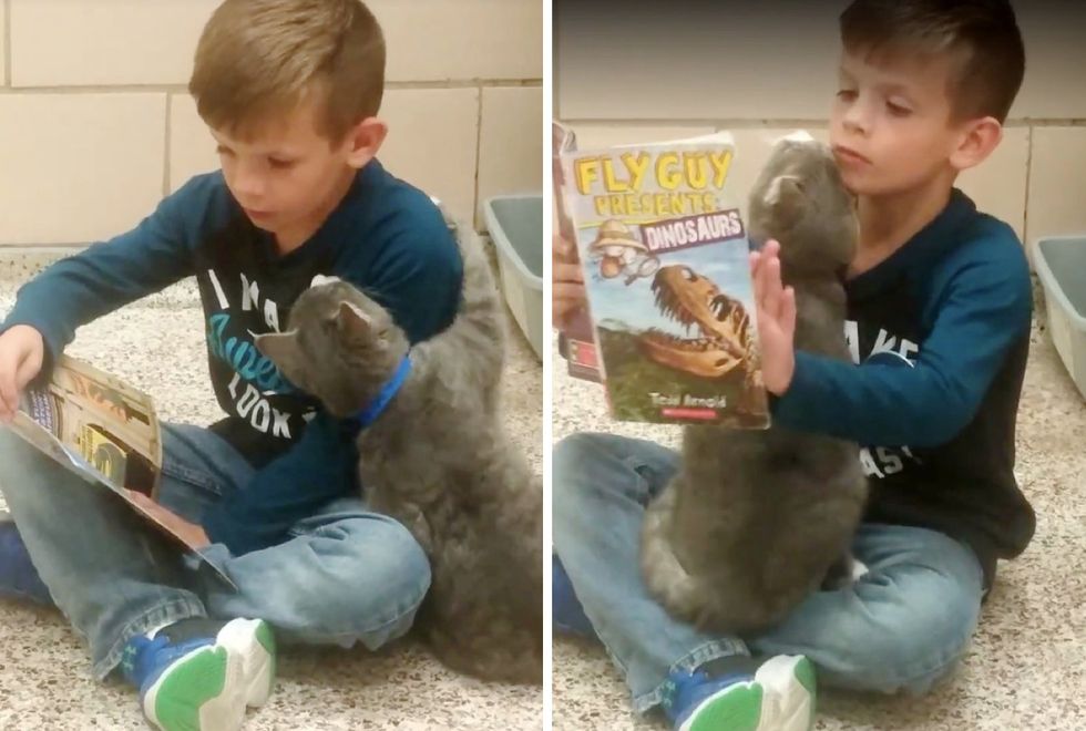 A young boy came to the shelter to read to rescue kitties. One of them became his biggest fan.