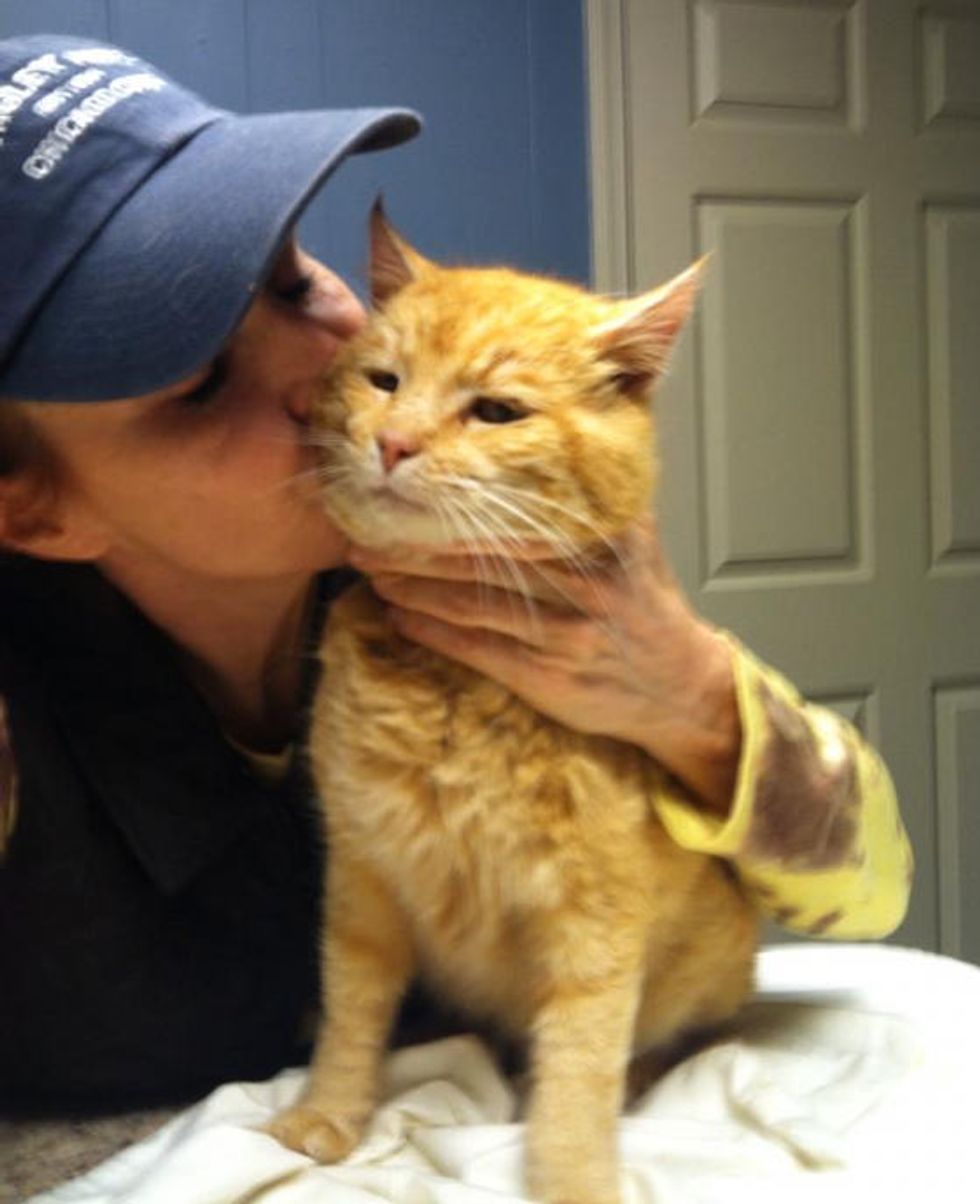 A 12+ year old ginger cat came to PurrEver Ranch Cat Sanctuary one day, and "This ginger gentleman found me as I was sweeping our front steps Sat. He is road weary. Paws are blackened from being on the streets, thin but exceptionally sweet," said Rita Wood, founder of PurrEver Ranch, cat sanctuary for senior, special needs cats.
