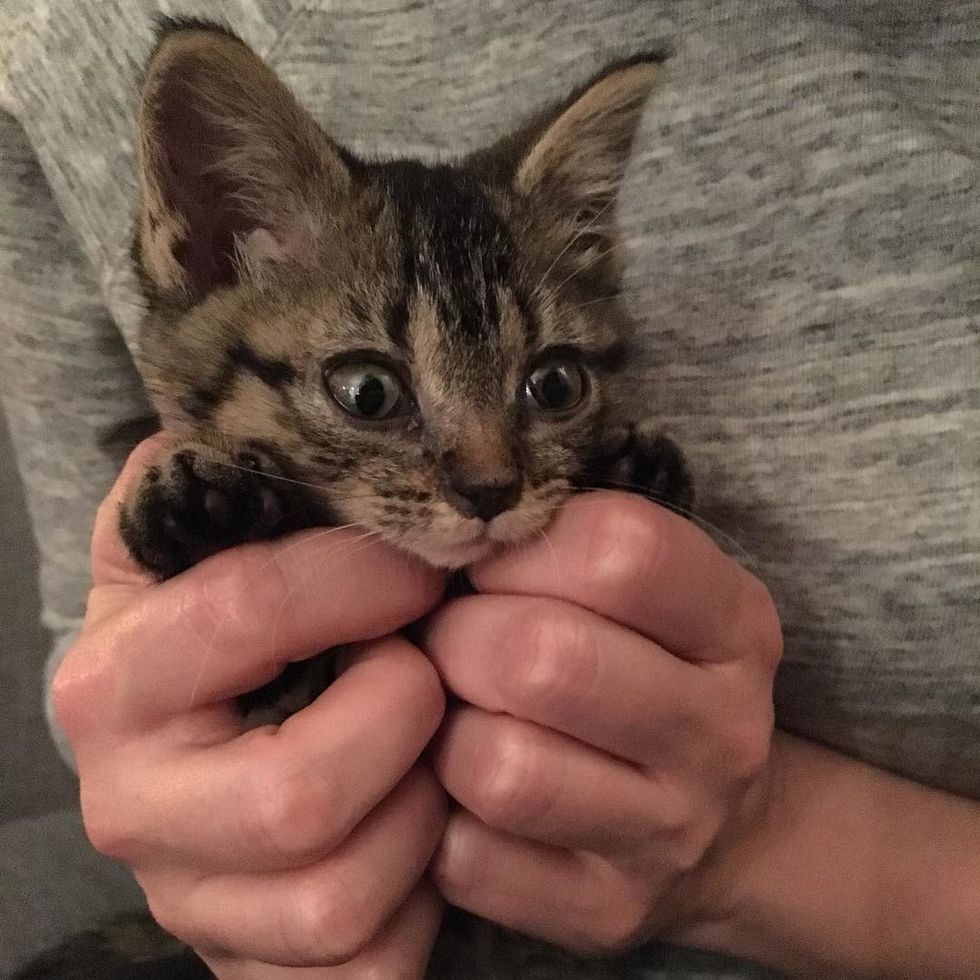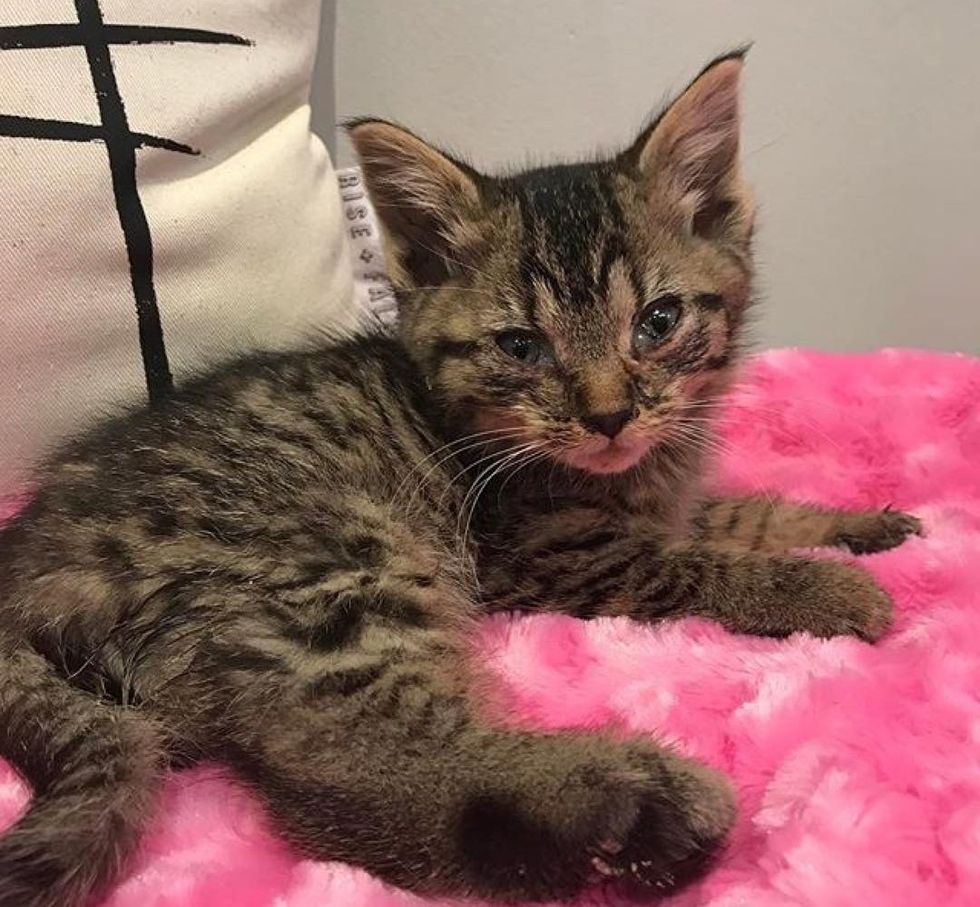 A tiny kitten was found stuck in a chain link fence by a passerby in Brooklyn, New York. He saw the tabby hanging by her little leg and rushed to save her.