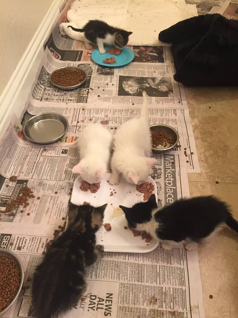 Cleaning up afterwards is always fun for the foster parents when the kittens try to 'help'.