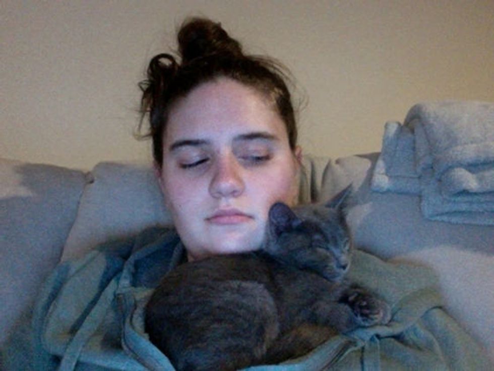 Meet Thor the cat who loves to sit on his roommate's chest when she gets on her laptop. As he grows, his chest perching habit never goes away.