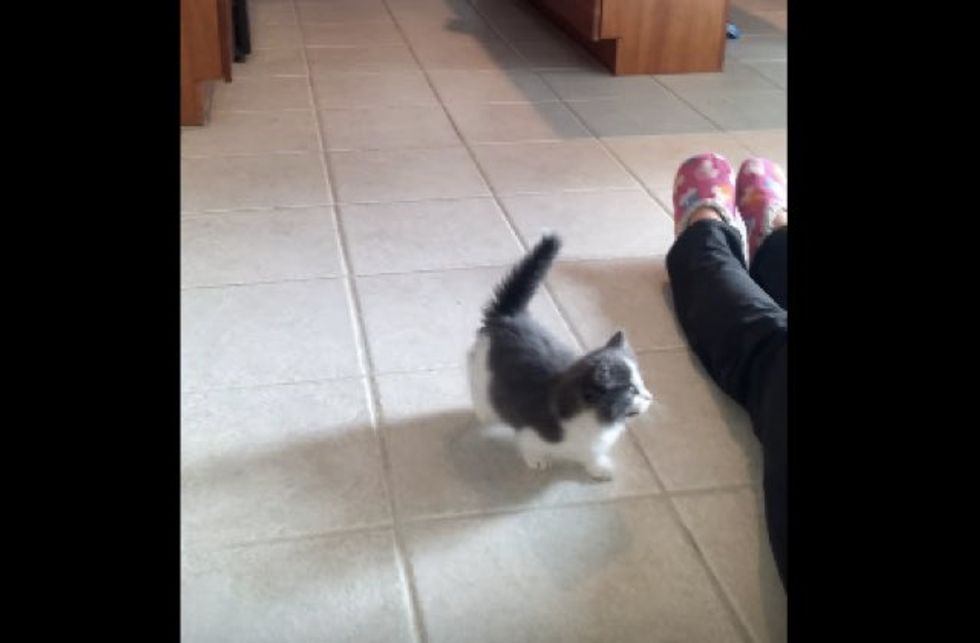 Carlin a 9 week old teeny kitten is teaching his human to throw, and he fetches. :)