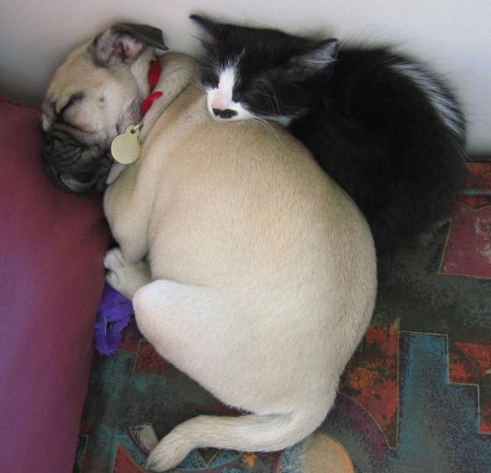 Then Bubble uses Lola as a pillow while Lola cuddles with the mouse