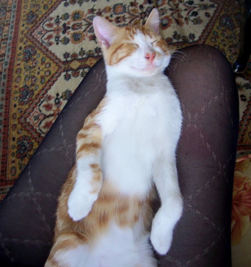 "This cat really loves his belly rubs. Rub the lower belly and you can get him to stretch his feet, rub the top belly and he will stretch out his arms. If you even pretend to rub his belly, he will just roll over and lie there."