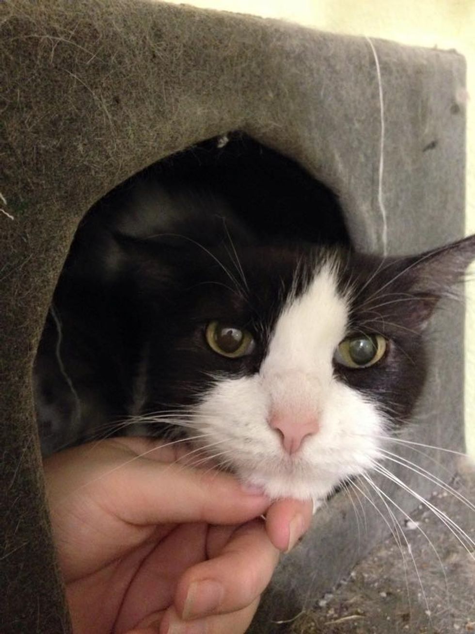 Knowing that a cat his age may end up at death's door if put in the shelter, Karyn Poplin of Kitty Adventure Rescue League, a cat sanctuary in Fort Worth, Texas, took him in and gave him a wonderful home to spend his retirement.