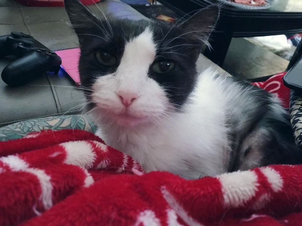 Mr. Kitty cuddling with his mom in his favorite soft blankie. He was the happiest he could be in a long time.