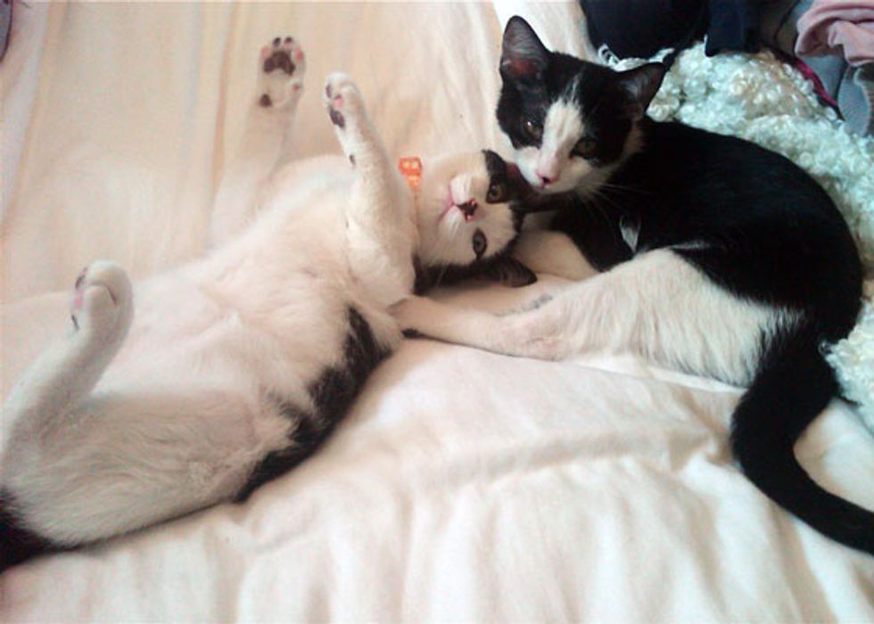 Photos by ©Avarie Shevin. Here are the cuddly tuxedo brothers in action.