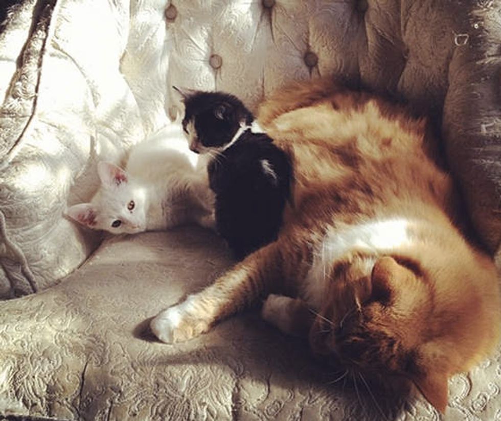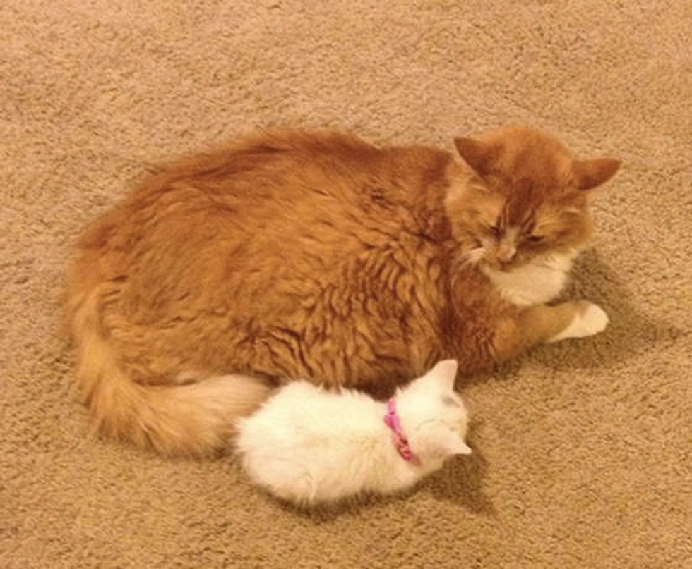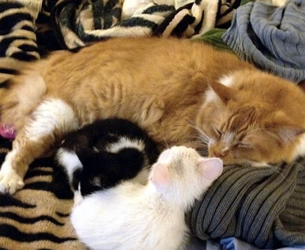 Zorro became a loving and nurturing foster dad to two little rescue kittens.