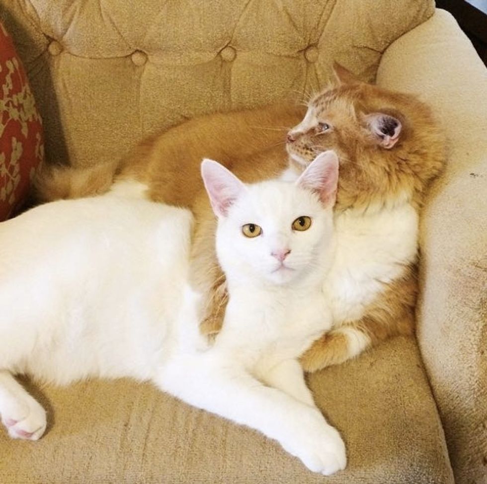 "Zorro is helping us foster two new kittens... The best part is: Zorro is a MALE 30lb, 8 YO Maine Coon! He's not even female, but he's been such a fantastic nurturer of our two new fosterlings," Carrie Anne said.