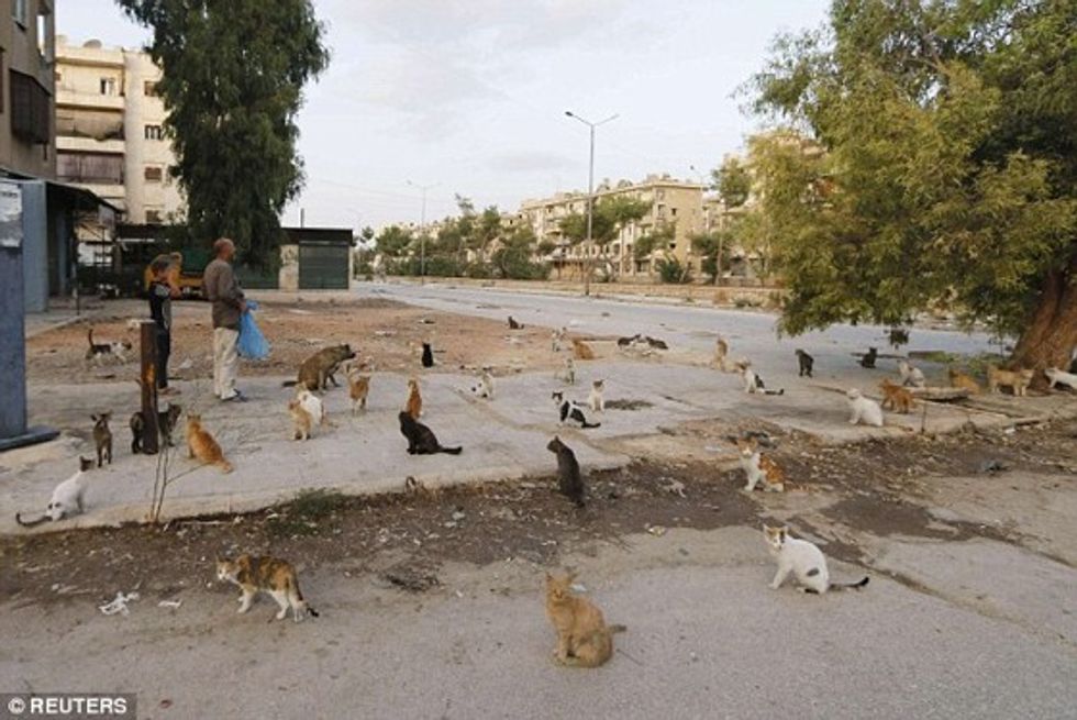Alaa spends about $4 (£2.50) a day on meat to feed approximately 150 stray cats in his neighborhood in Aleppo.