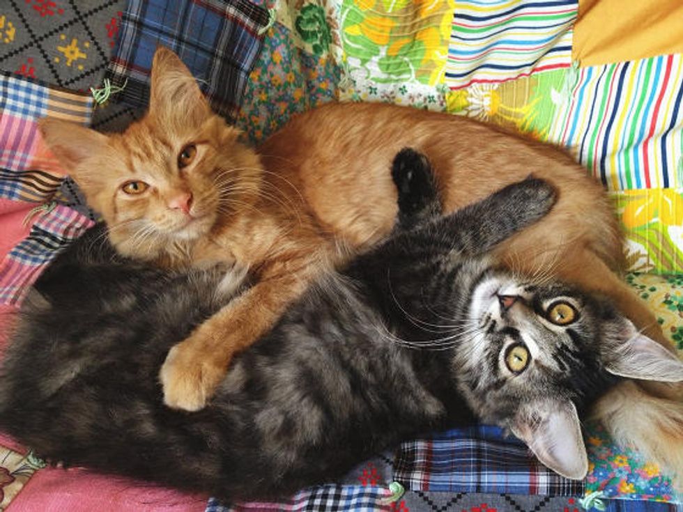 "There two were cagemates at the humane society. I planned on only bringing home one cat, but I couldn't stand to split them up. Now every time I see them together, it makes me smile," said Karlijoy via reddit.