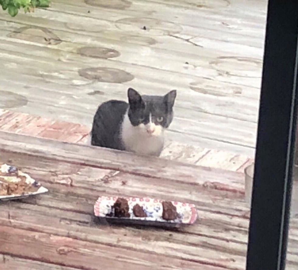 It didn't take long for Stefany to notice that the cat was pregnant. She would chirp whenever she saw someone in the house. Stefany's cats heard her meow and came running to the window to see her.