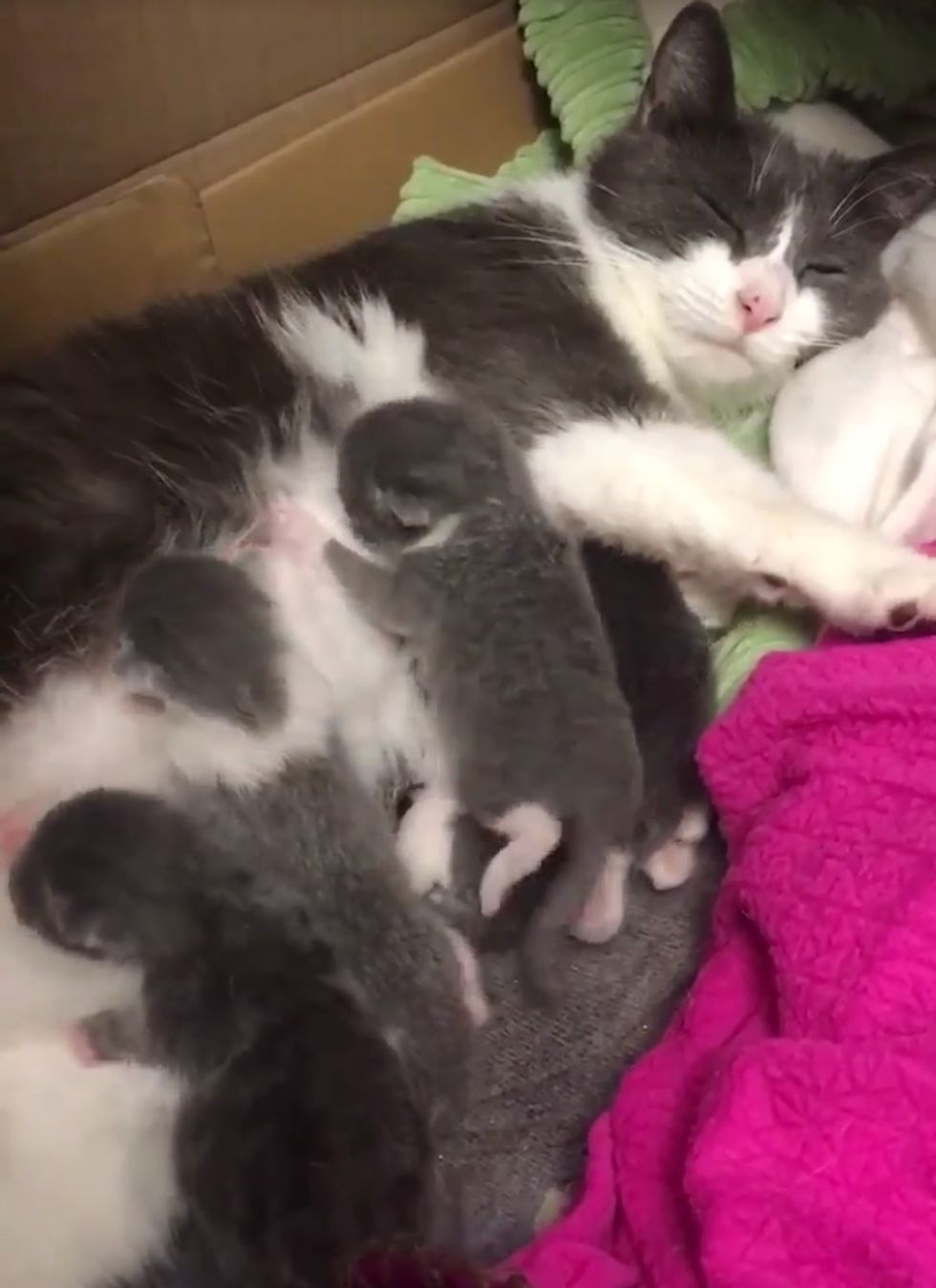 They took her off the streets so she and her kittens could have a chance at a better life.