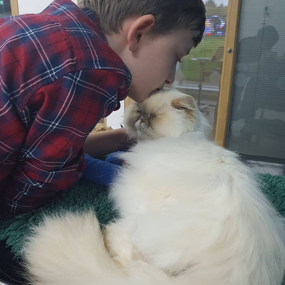 Their son, Kian, was four years old when he met Simba the cat who waltzed straight up to him as if he knew exactly what the boy needed. Kian was born premature and as a result had many health issues. "He has autism, secondary immunodeficiency syndrome and degenerative bones and soft tissues," Becky Green, Kian's mother, told Love Meow.