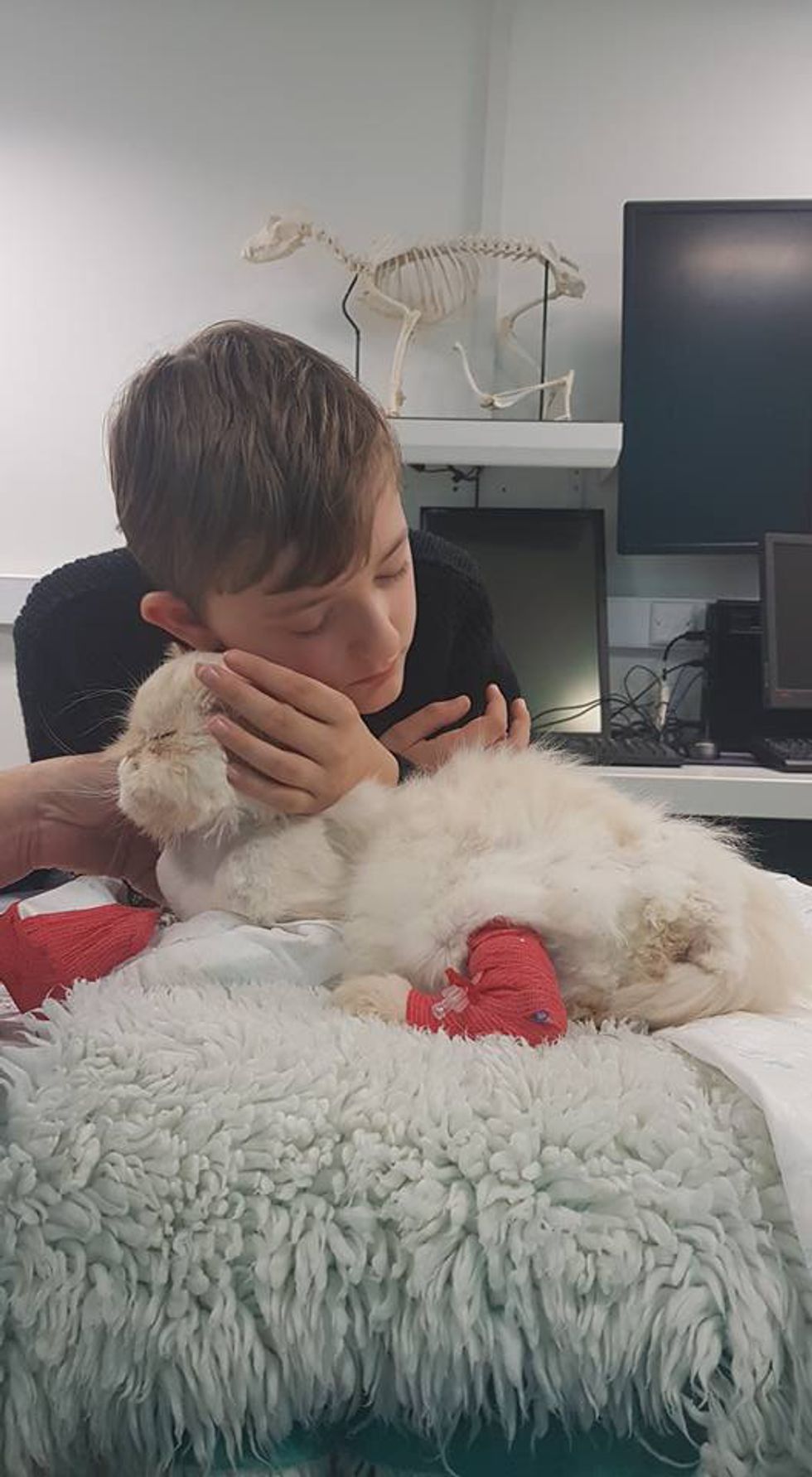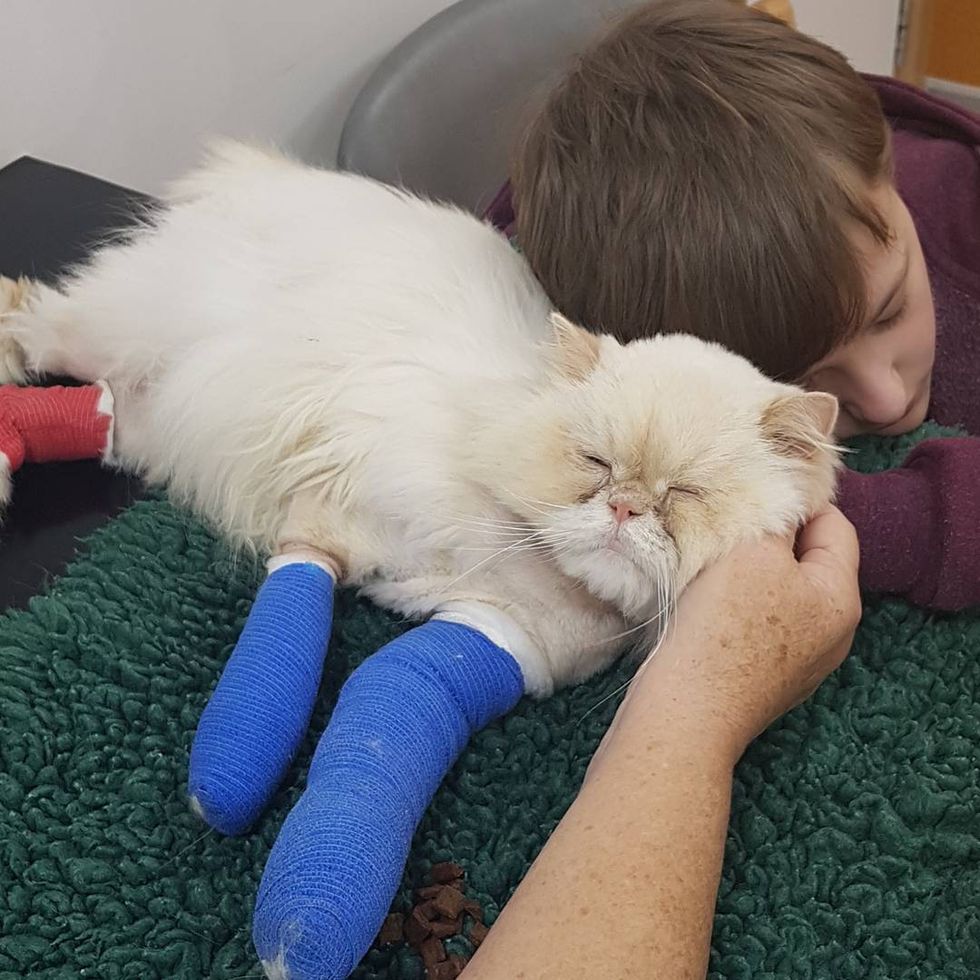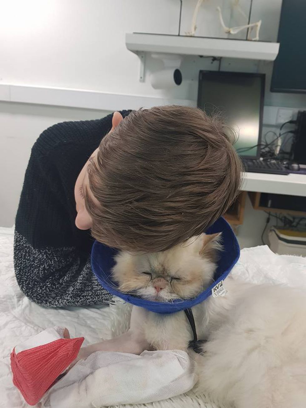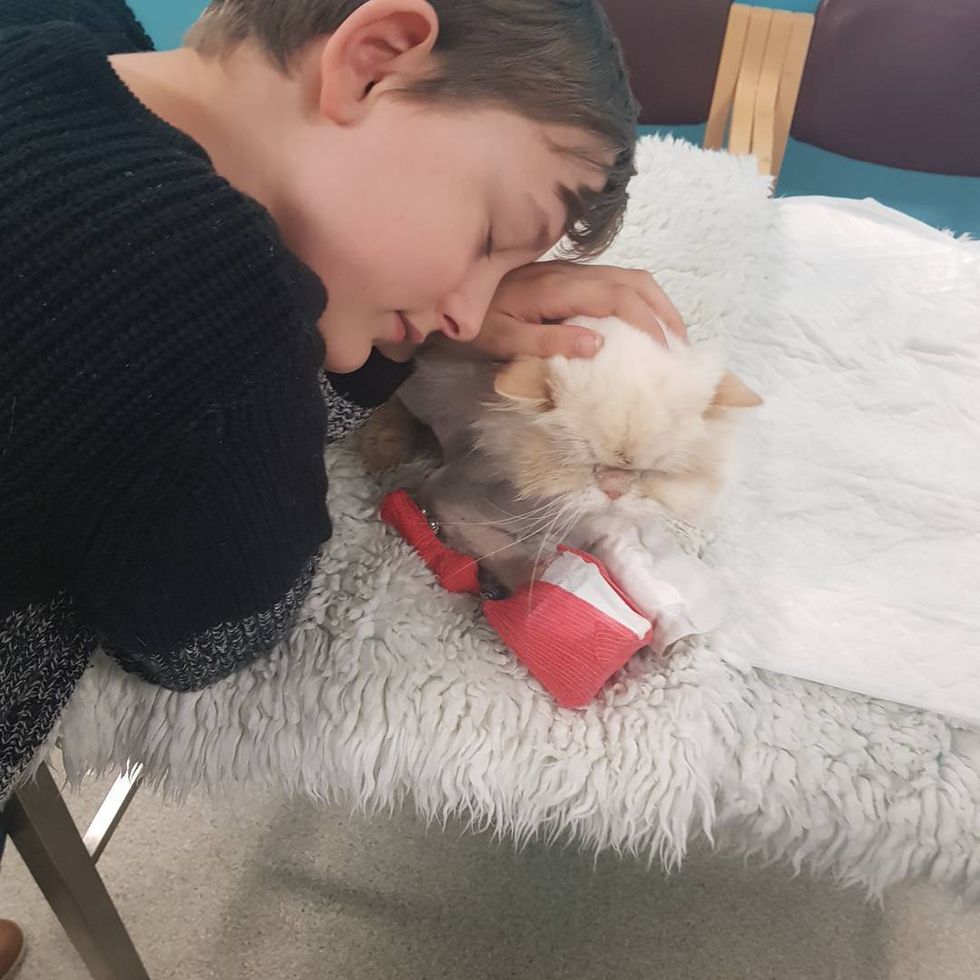 "Kian was with us and hysterical - he laid on the floor begging the vet to try. She said she'd look at him under anesthesia but she thought he should be put to sleep as it was a big job," Becky told Love Meow.