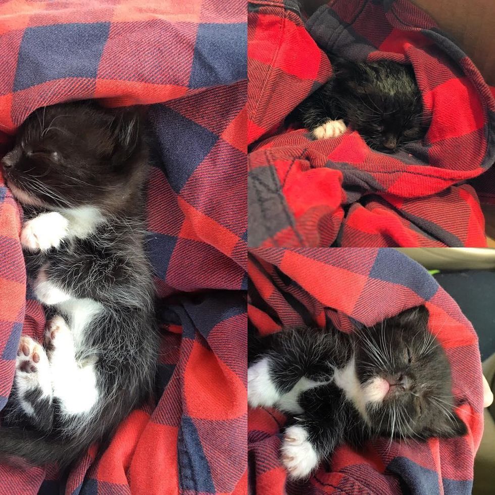 After searching for other kittens and the momma cat, it was clear that Panda had been left behind. He could hardly open his eyes due to an upper respiratory infection. "He was severely dehydrated, so I took him in."