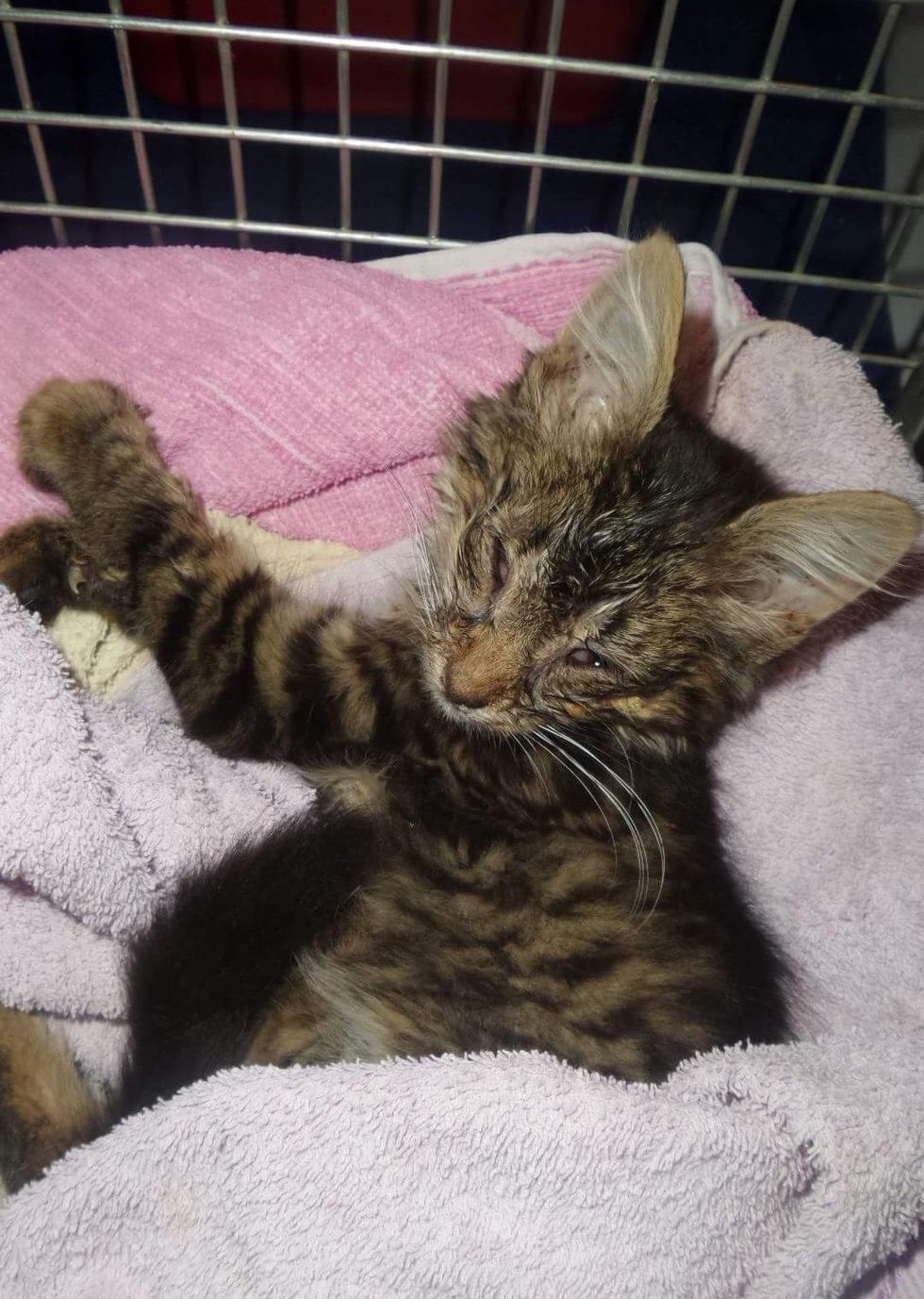 A couple from South Africa spotted a tiny kitten on the streets barely moving. When they scooped her up, they realized the terrible condition she was in.
