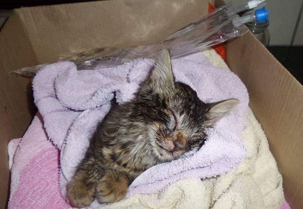 "My step dad was a Veterinarian before he became an Orthopedic surgeon. They were able to get emergency supplies from a friend so he could start the kitten on a recovery treatment."