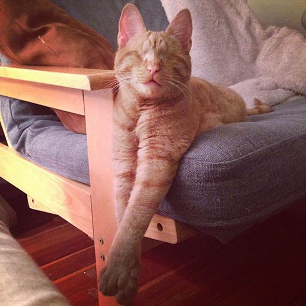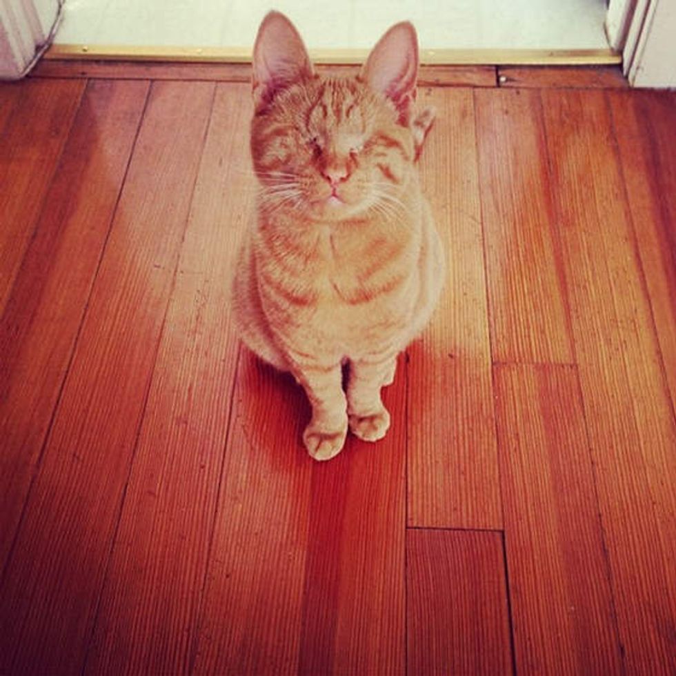 Dillon was born blind and lived on the streets for four months before being rescued by the Animal Rescue League of Boston. Even though Dillon has never had sight, it doesn't stop him from living a normal and happy feline life.