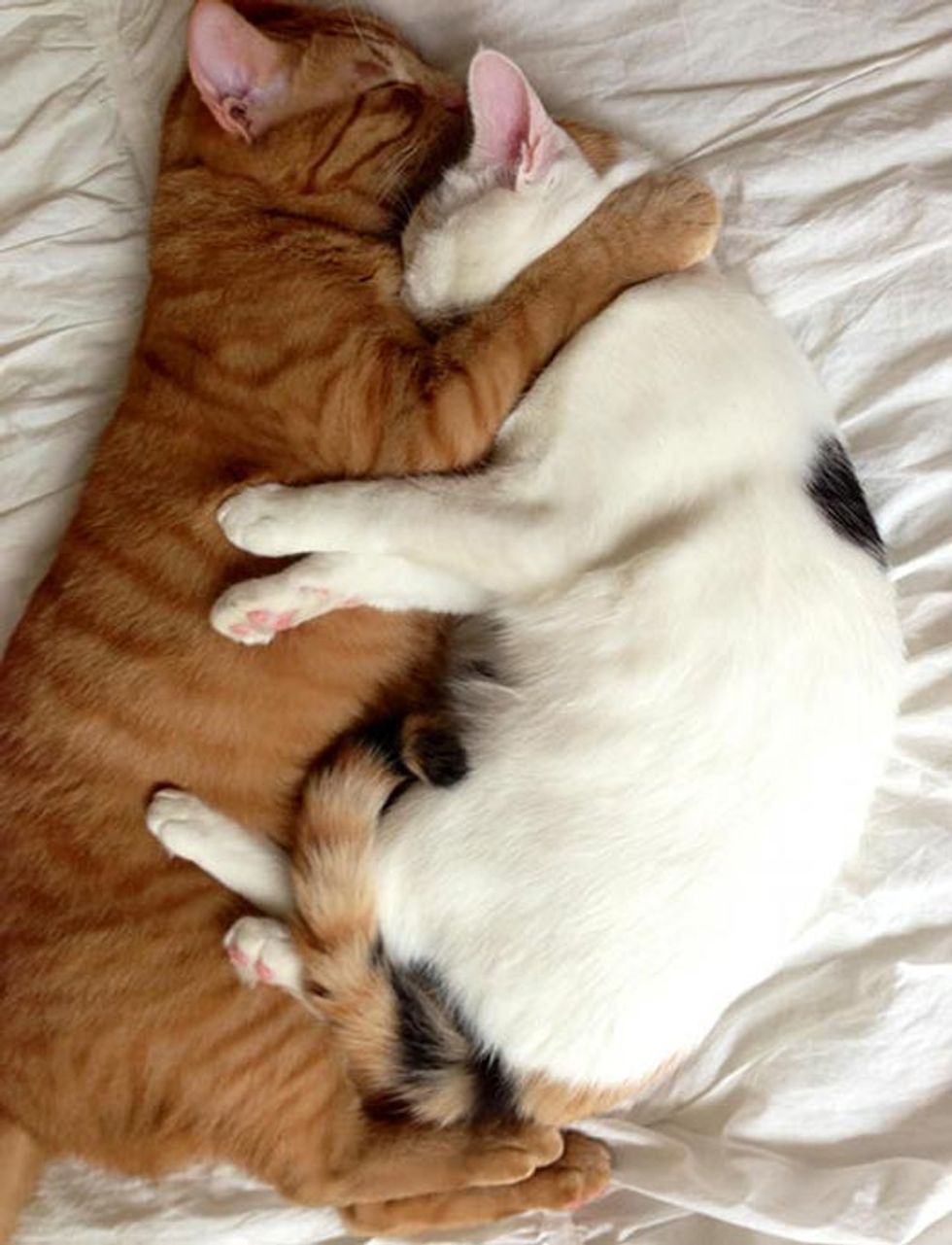 "He used to come cuddle with me all the time, but now he cuddles with her instead." They are like the perfect match in heaven.