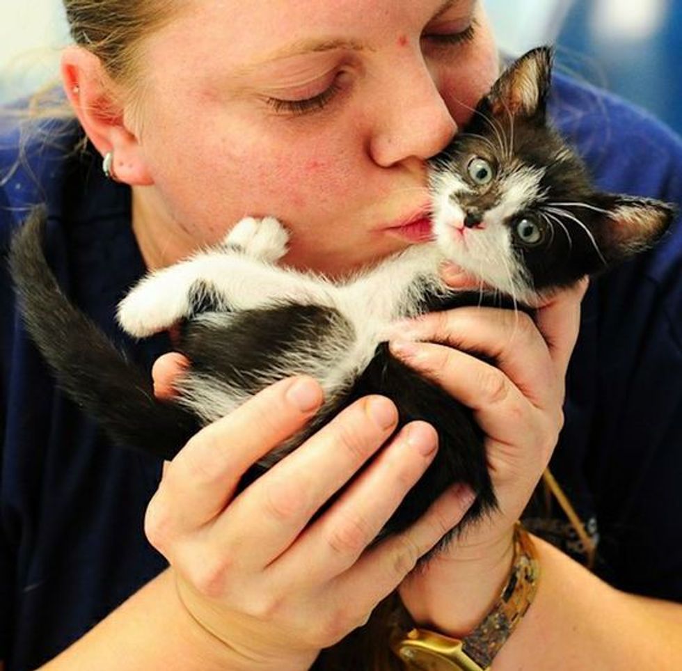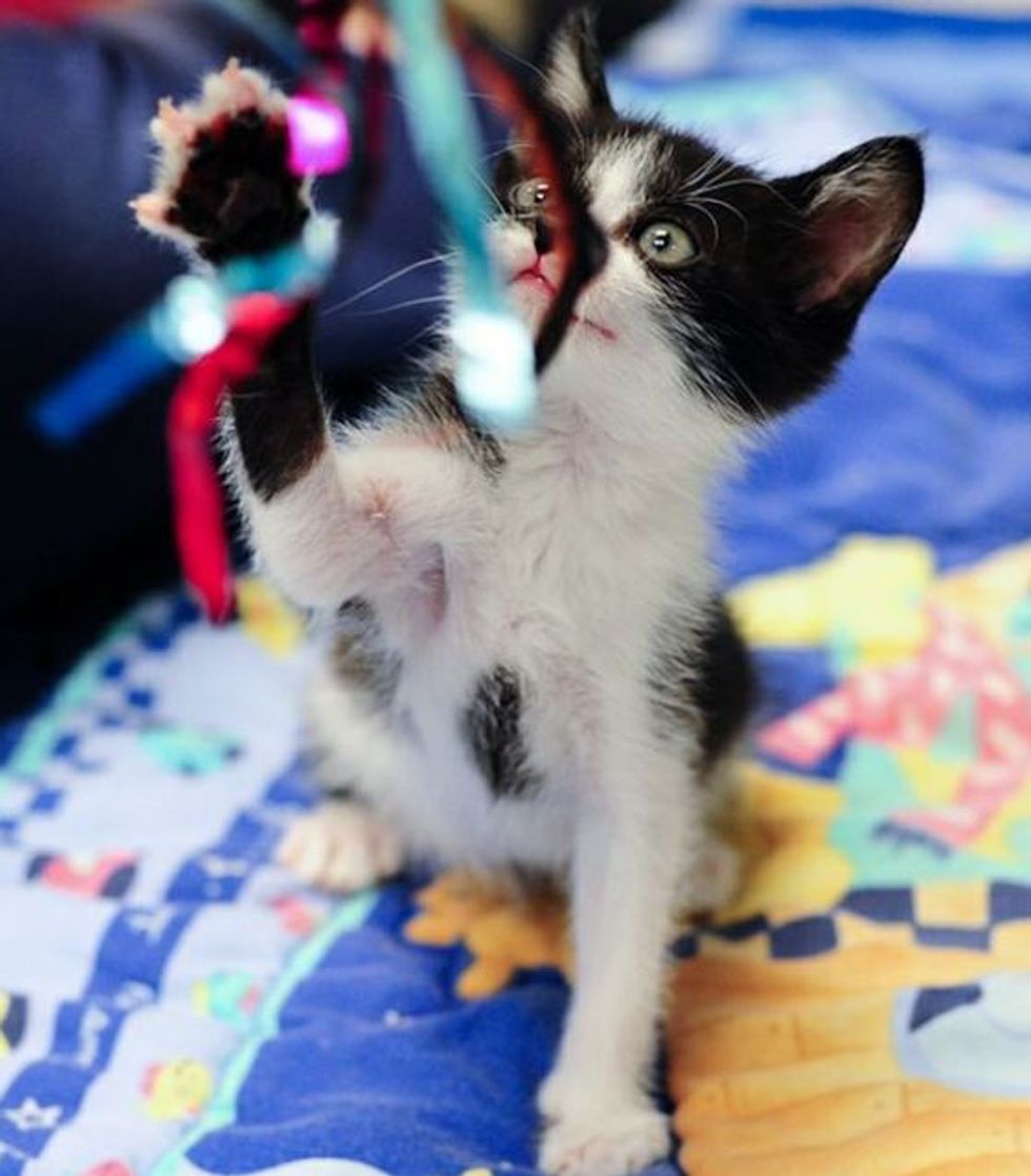 "He was found outside under a palm frond with his siblings. The mama kitty came back for the siblings but left Ferdinand behind. He is sooo cute - he has chaps and sleeves and a polka dot on his belly! He's quickly approaching adoptable age, so please share for him to find a forever home! He's a little rascal - full of trouble & love," said Good Karma Pet Rescue in South Florida.