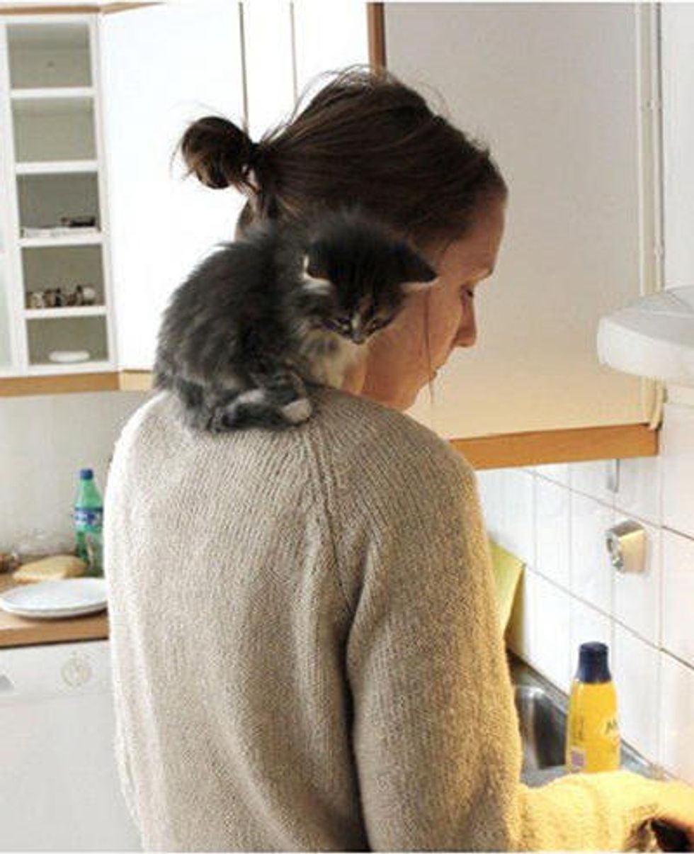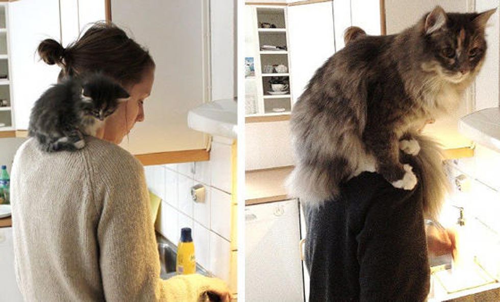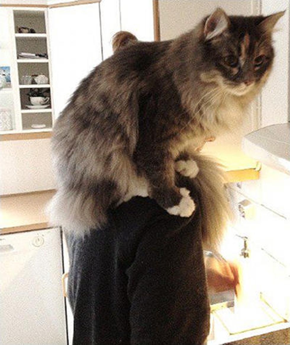 This fluffy Norwegian Forest cat just turned one. There is one thing that hasn't changed.