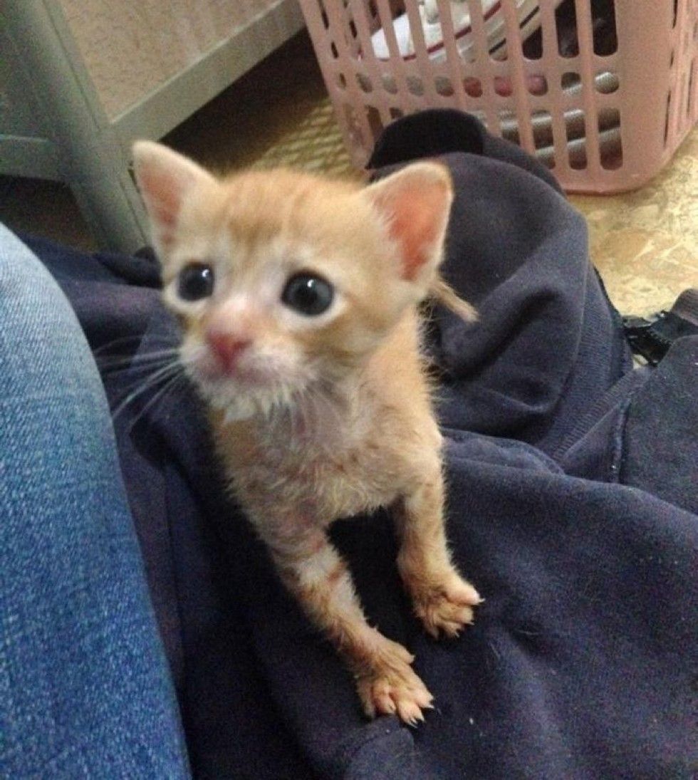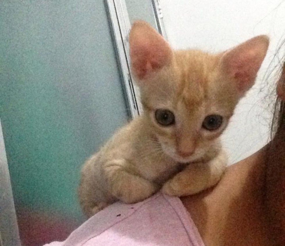 A miniature ginger kitten wandered into a market, meowing aloud. When a woman passed by, he ran up to her, begging to be taken home. She didn't even have a chance!