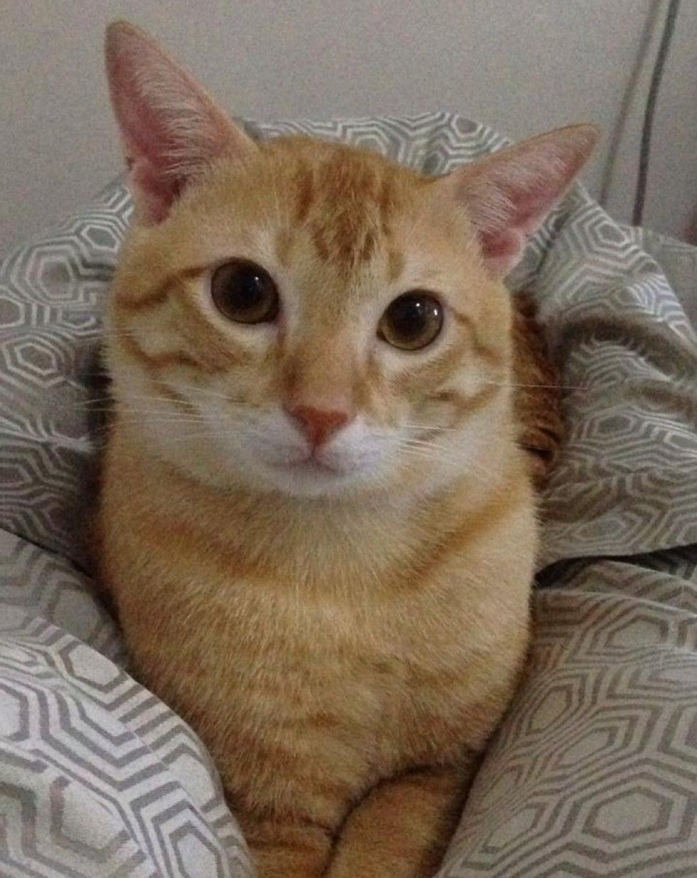 Two years ago, Orange the cat was wandering at a market in the Philippines all by himself. "He was meowing and all dirty," Haj Mamorno told Love Meow.