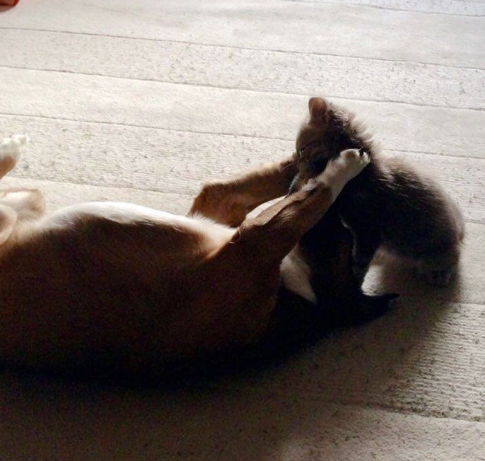 "Jinx bonded with Toby when he was very tiny, I'd say about 16 weeks old, they would play together and sleep together too."