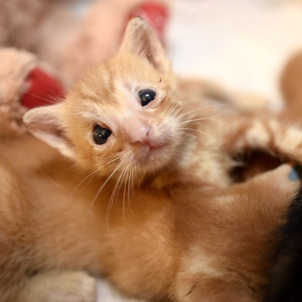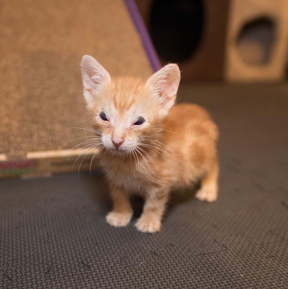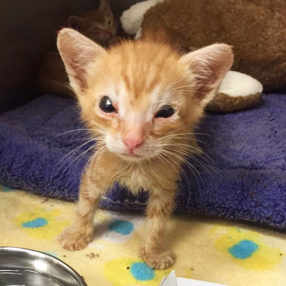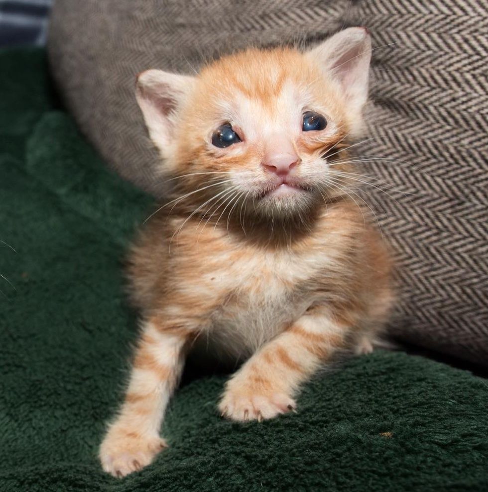 The ginger boy was just half the size as his siblings. While the other two kittens began to improve and grow, Benny stayed tiny and had a hard time gaining weight.