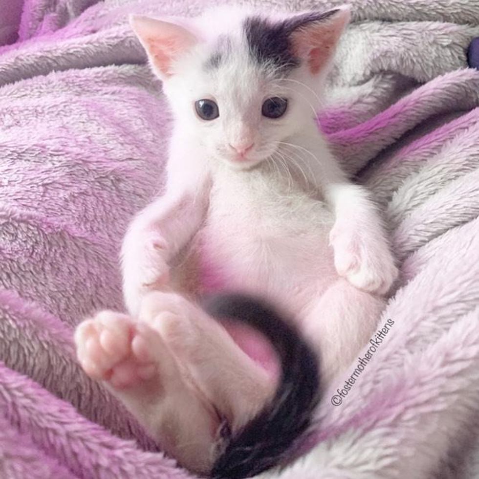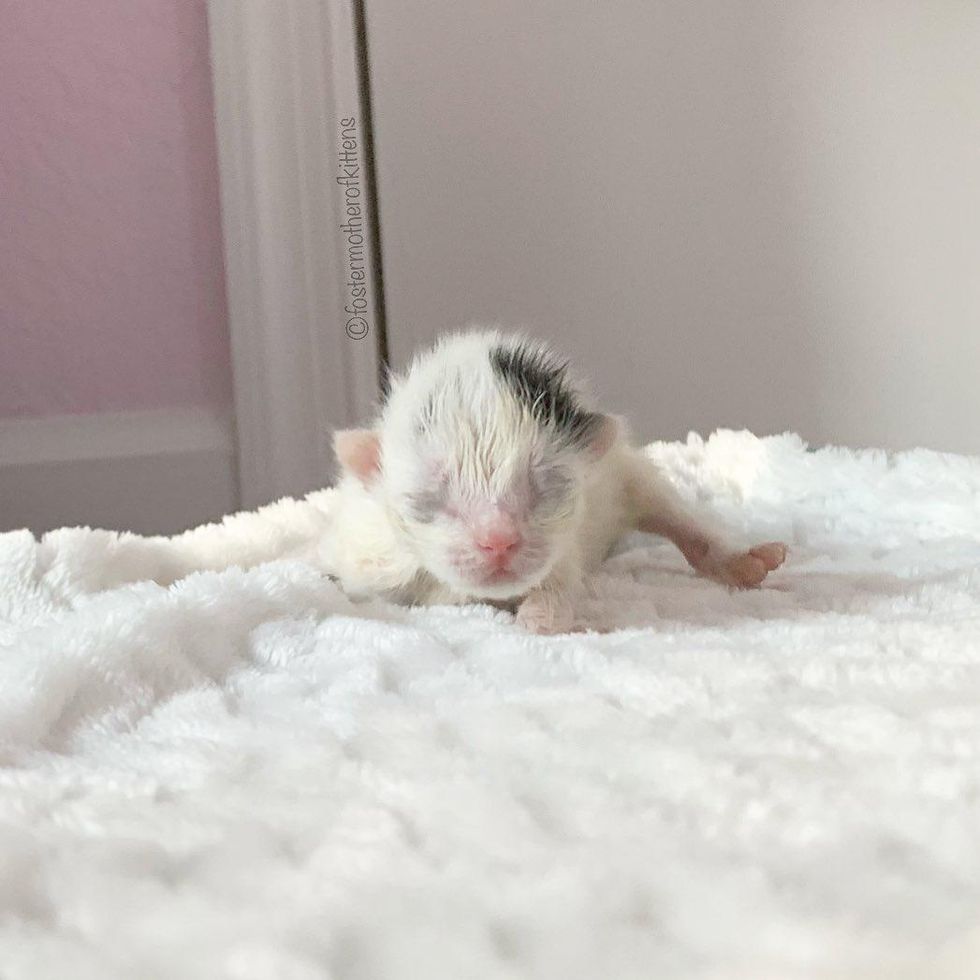 Heather, a foster volunteer for Norfolk Animal Care Center in Virginia, took home several neonatal kittens that needed critical care. Despite her very best efforts, Clove was the only one that pulled through.