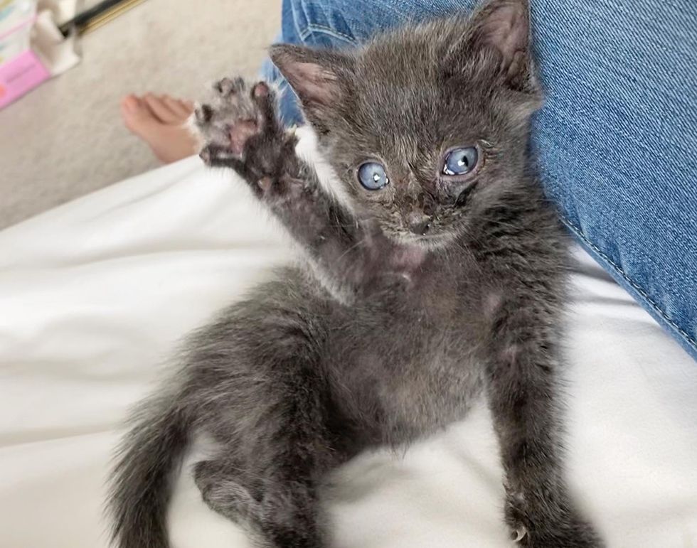 After several days of painstaking care, the little warrior kitty perked up and began to thrive. She was so thrilled to discover her new-found energy, jumping and running around the room like she owned it.
