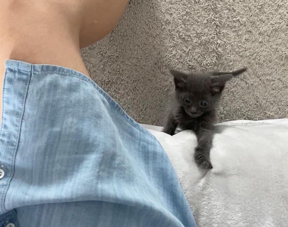 A kitten who was brought back from the brink, insists on staying close to the person who saved her life.