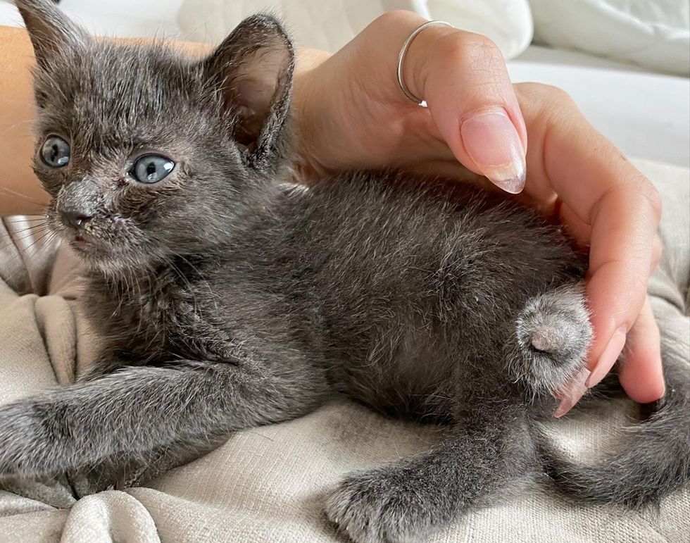 Despite having three paws, Pawly doesn't think she's any different. She can walk, run and play just like any other kitten.