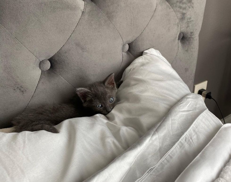Every morning, Patricia wakes up to little Pawly happily greeting her. At night, the kitten snuggles behind the pillows, playing hide and seek, before falling asleep next to her favorite person.