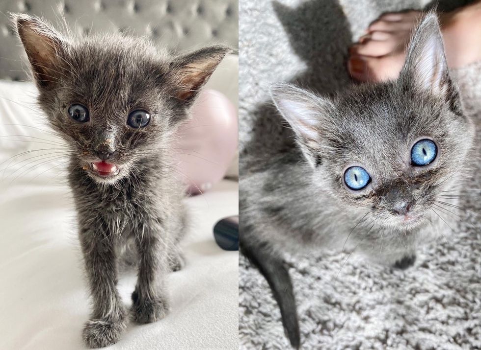 At six weeks old, the kitten weighed only half of a pound. Despite having all the odds stacked up against her, little Pawly never gave up and was so thankful to be cared for. Patricia made her a little apartment in her bedroom, so she could keep an eye on the kitten all day and night.