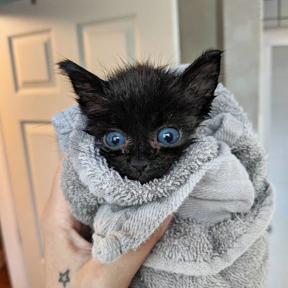Shauna, a volunteer of the shelter, immediately offered to help. The weaker kitten, Loki, lost his fight within 24 hours despite their very best efforts to save him. The surviving sister, Nebula, was hanging in there, fighting to live.