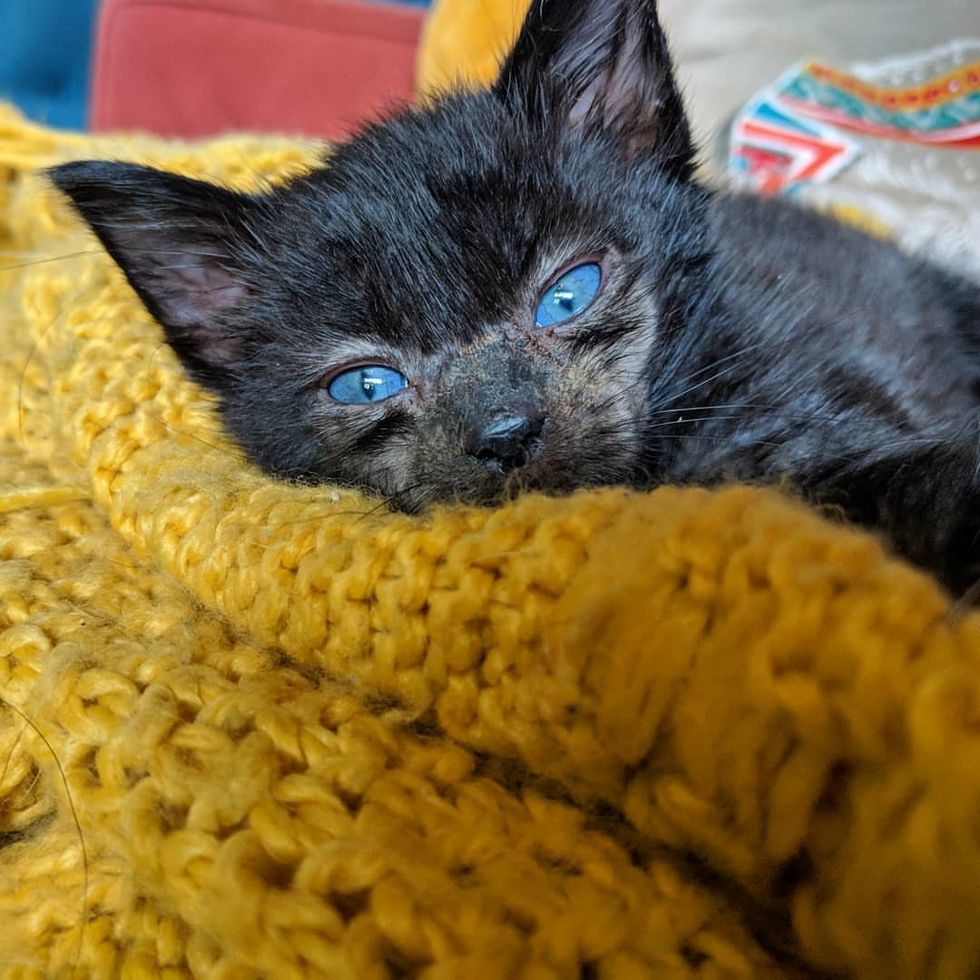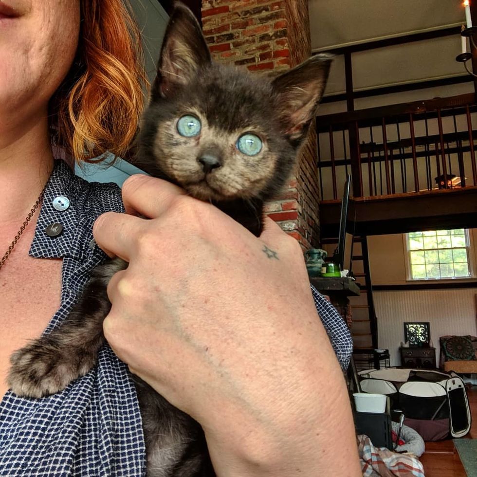 "She is extremely active and loves to run around and play. She went from being on death's door when I got her at five weeks old to being absolutely fearless," Shauna told Love Meow.