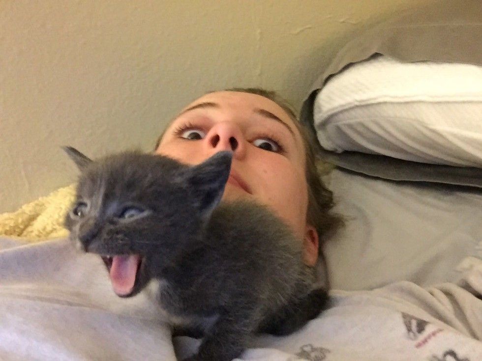 "We asked to see the mama cat and the lady said she was sleeping and couldn't be disturbed... Meanwhile, this kitty was crying and hungry. We're experienced with bottle feeding little bitties, so we decided to rescue this girl from a questionable situation. So happy that we did!" Posy's human mom said.