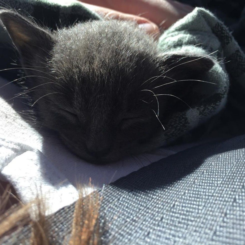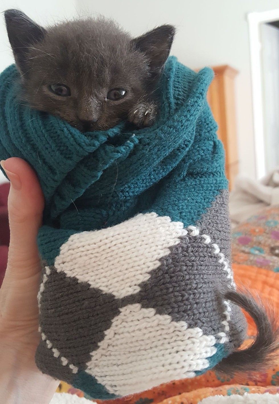 They keep the kitten warm and comfy, the purrito style. Posy purrs up a storm when she gets all the love from her humans.