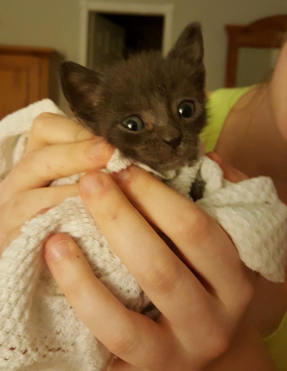 She was smaller than the size of a banana but she got a pair of lungs that made the loudest meows. This tiny grey kitten was crying for attention, when she first met her humans. They knew they had to take her home.